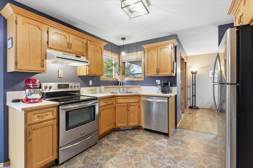 This Beautiful home shows off its pride of ownership inside and out! Enter the home to the main floor to find the living room, dining room, kitchen, family room, 2 piece bathroom, and laundry room with access to the spacious double attached garage. The Upper level host a 4 piece bathroom, and three bedrooms including the primary with its own walk-in closet and 4 piece ensuite bathroom. The fully finished basement has another 4 piece bathroom, bedroom, den, utility room, and a large rec area. The home has many upgrades including shingles, vinyl siding, and stone done within the last 5 years. A large deck over looks the back yard with mature trees, fire pit, and back lane keeping it private. Close to parks and amenities this property has to be viewed in person to truly appreciate everything it holds! Listing agent is related to the Seller.
