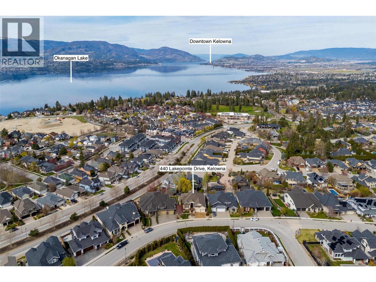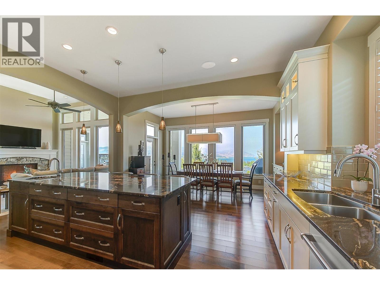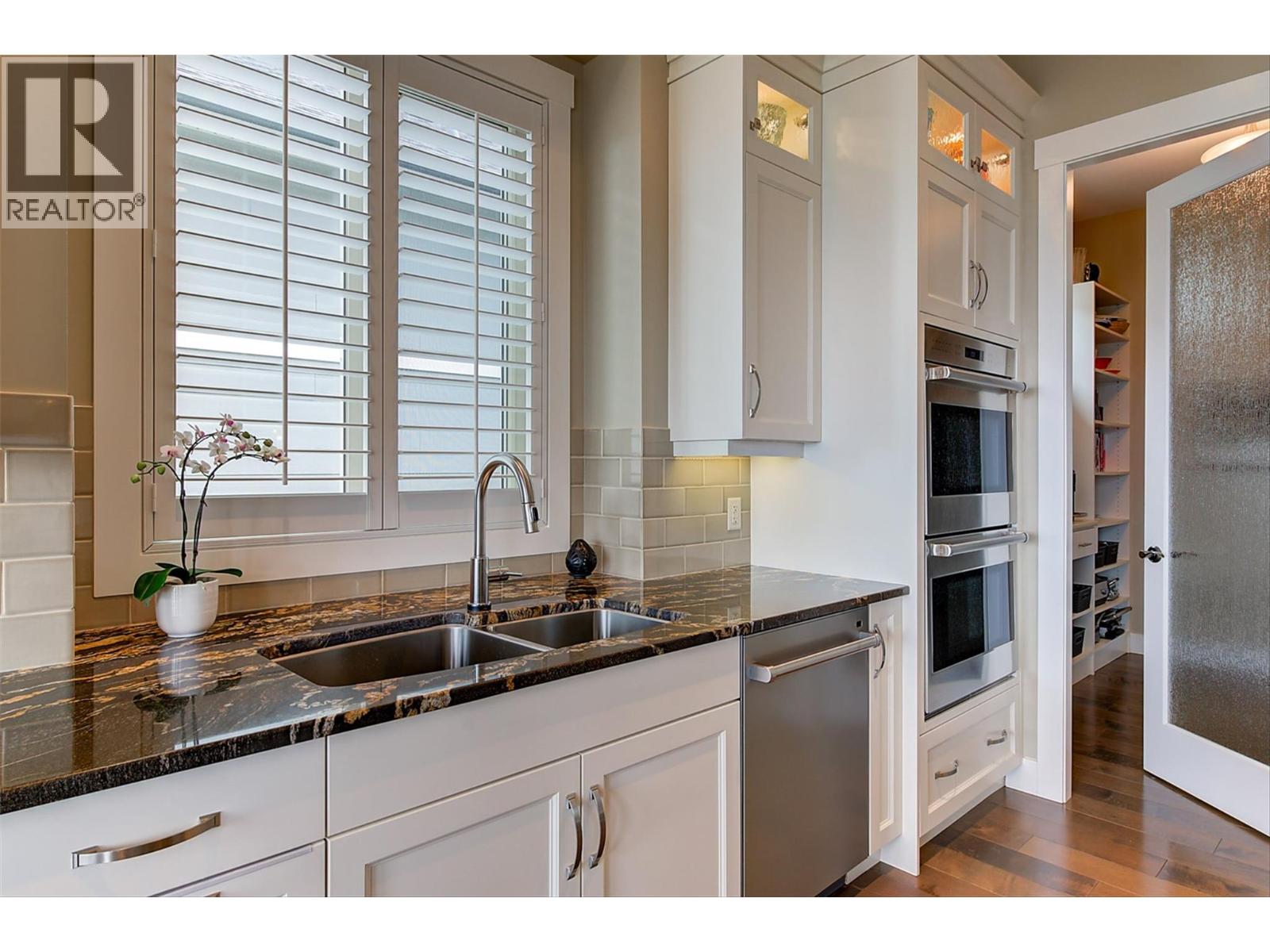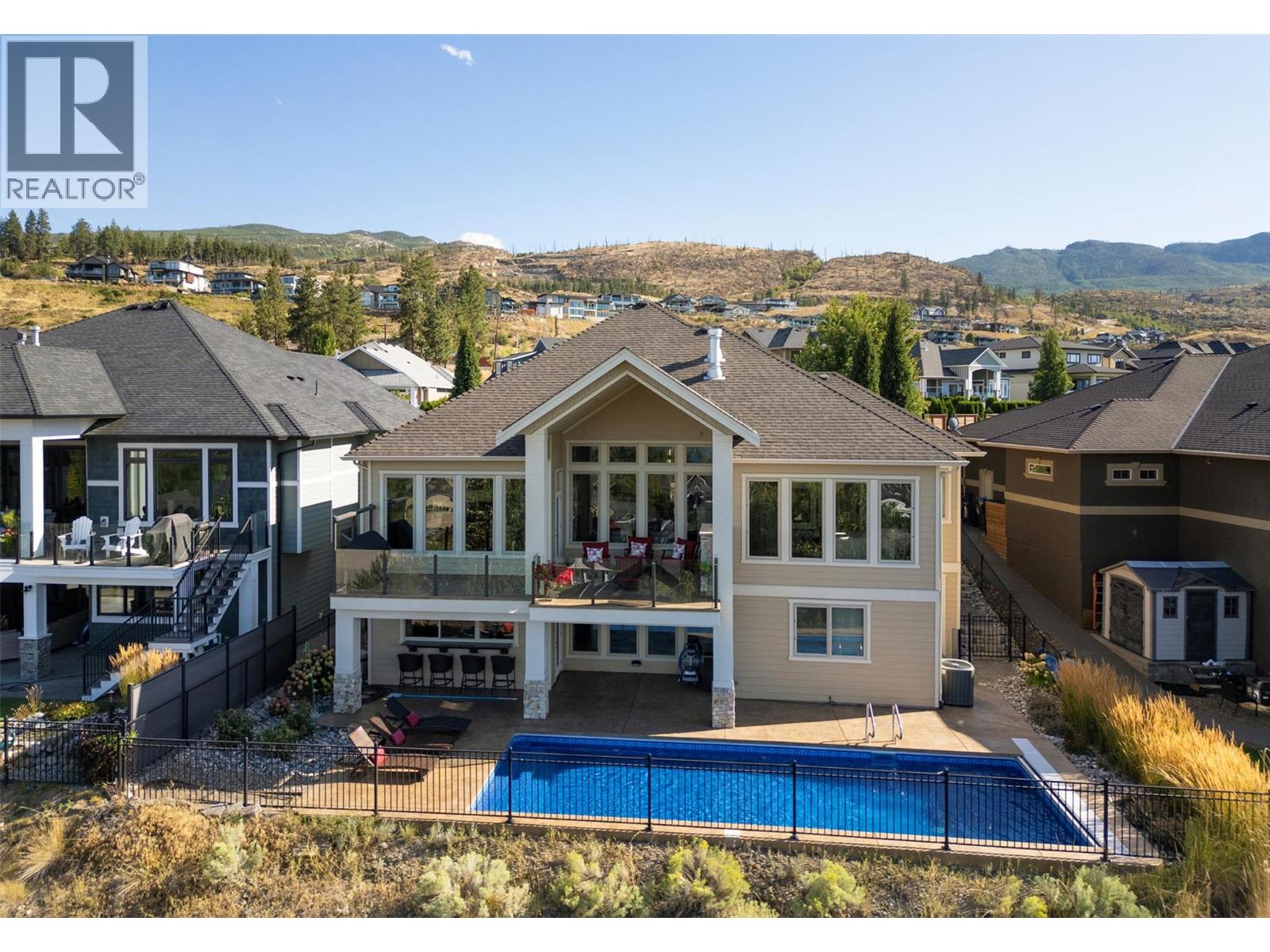 This beautifully crafted home offers gorgeous panoramic views of Okanagan Lake, the surrounding mountains and the city of Kelowna; a truly breathtaking backdrop that can be enjoyed from both levels of the home! With timeless design, the main floor showcases a quaint courtyard entrance, soaring ceilings, maple hrdwd & floor-to-ceiling windows that perfectly frame the views. The gourmet kitchen is equipped w/high-end Wolf & Sub-Zero appliances, granite surfaces, a sit-up island & butler's pantry. The open layout connects effortlessly to the dining & living areas and opens to the covered patio with a gas f/p; perfect for soaking in those sunset skies. The main level primary bdrm is a true retreat w/patio access, a spa-like ensuite and expansive lake & city views. A den, powder rm & laundry/mud rm round out the main level. The walkout lower level is ideal for entertaining, featuring a rec rm with a gas f/p, a full wet bar with pass-through window to the outdoor sit-up bar, 2 king-sized bdrms & 2 beautifully finished bathrooms. Outside, enjoy a resort-inspired backyard with a sparkling pool with safety cover, stamped concrete patios and jaw-dropping views at every turn. With low-maintenance landscaping & incredible indoor-outdoor flow, this home delivers a high-end lifestyle in a beautiful setting. Located just minutes from elementary, middle & high schools, hiking trails, parks and the charming Kettle Valley Village. A perfect fit for a family, executive couple or empty nesters!