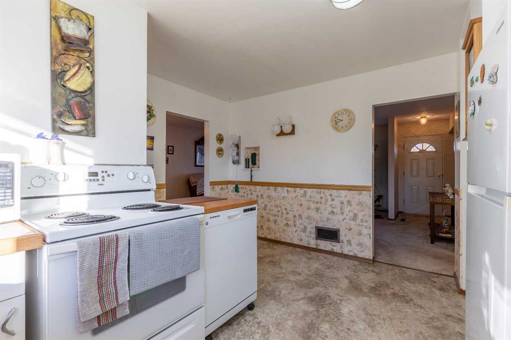 Come take a look at this charming Fort Macleod bungalow home! Step over the front porch and into the foyer where you'll be greeted by a spacious living room with tons of room for seating and a large front window to let in plenty of sunlight. Around the corner, the dining room features built-in shelving and overhead lighting while the nearby U-shaped kitchen provides a convenient layout for the chef in your family with extensive cupboard and pantry storage and a large south-facing window to brighten the space. Down the hall, three bedrooms surround a full four-piece bath. The lower level has been partially finished so you can bring your imagination and create the basement of your dreams! Outside, the fenced backyard features a clothesline, small trees, patio seating, a single detached garage, and plenty of space to make your own. If a charming bungalow in a quiet neighborhood sounds like the place for you, give your REALTOR® a call and book a showing today!