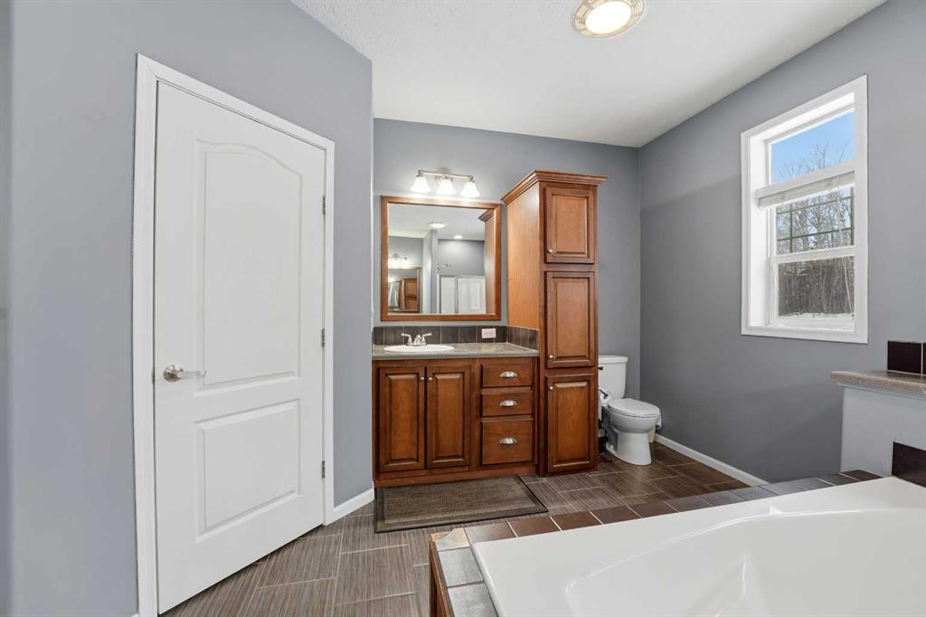 This beautifully maintained RTM home offers a thoughtful layout and all the features today’s buyers crave. The stunning kitchen is a true standout, boasting endless cabinetry, a gas range, a prep island, and a spacious dine-at island—perfect for everything from casual mornings to hosting friends. Open sightlines lead seamlessly into the sitting area, where large, sun-filled windows create a bright and inviting entertaining space, complemented by a cozy wood-burning fireplace that sets the perfect ambiance. The generous family room is ideal for movie nights, game days, or simply unwinding. Just off this space, you’ll find a large guest bathroom, two well-sized bedrooms, and a laundry room with exceptional storage and workspace. Privately positioned across the home, the primary suite is a serene retreat flooded with natural light. The dream ensuite features a massive soaking tub as its centerpiece, dual sinks, a stand-up shower, and his-and-hers walk-in closets—designed with both comfort and functionality in mind. Outside, enjoy two expansive decks—one north-facing and one south-facing—overlooking a nicely graded and landscaped yard. An oversized garage awaits your finishing touches, offering endless potential. Ideally located just minutes from Pigeon Lake, spontaneous beach days are effortless, while not one but two nearby golf courses invite you to enjoy sunny afternoons on the links.