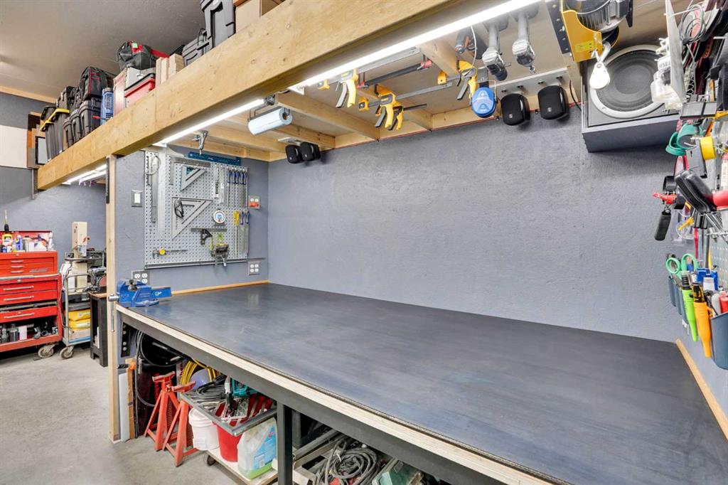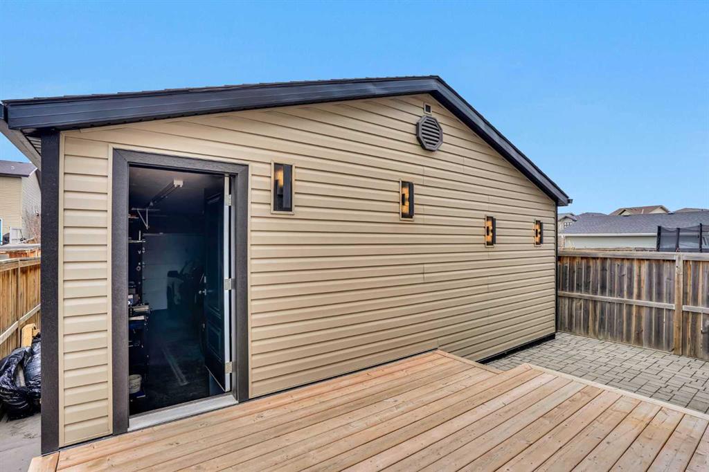 Welcome to one of the most customized homes on the block! This thoughtfully adjusted floor plan features 10-foot ceilings on the main level, creating a rare, open-concept space perfect for cooking, dining, and relaxing. The spacious kitchen is designed to impress, showcasing a high-end modern sink and a large island that’s ideal for both everyday living and entertaining. Upstairs, you’ll find a full bathroom (never used!), two generously sized bedrooms, and a conveniently located laundry room—an uncommon and highly desirable feature in this area. The expansive primary suite includes a walk-in closet and a luxurious 4-piece ensuite, complete with a deep soaker tub and a separate stand-up shower. The undeveloped basement offers endless potential for future development, while currently providing a wide-open storage area. The furnace and mechanical/electrical systems have been strategically placed in the northwest corner to maximize usable space and minimize noise throughout the home. Additional upgrades include a best-in-class Kinetico water softener, delivering silky-smooth water throughout, along with a brand-new water heater and upgraded hail-resistant shingles to help protect your investment. The garage truly deserves its own spotlight. This fully finished, oversized double garage is a dream workshop. Built with an engineered slab (10-inch thick perimeter and 8-inch interior), it’s designed to support a vehicle lift and comfortably accommodate two full-size trucks—or even three with a lift—while still leaving ample workspace. Outfitted with 60-amp service, the garage includes extensive wiring for shop use, a 240V outlet, and multiple 15-amp bench plugs. Upgraded lighting features dedicated workbench lighting, attic lighting, and exterior deck and alley accent lighting, all on separate switches for easy home automation integration. It’s also pre-wired for an alarm system and PoE camera surveillance. Even the construction stands out: 6-inch thick insulated walls with Rockwool insulation, a 6-mil vapor barrier, and 2 layers of house wrap make the space exceptionally quiet—nearly soundproof. Additional highlights include upgraded LVL framing, a premium R-18.4 garage door, high-capacity storage shelving, and dual attic access points for convenience. Nearly every detail of this home reflects custom design, thoughtful upgrades, and exceptional care. And the location? With quick access to shopping, schools, and major Calgary routes, your daily commute is effortless. Don’t miss this rare opportunity to become the second owner of a pristine, meticulously designed home.