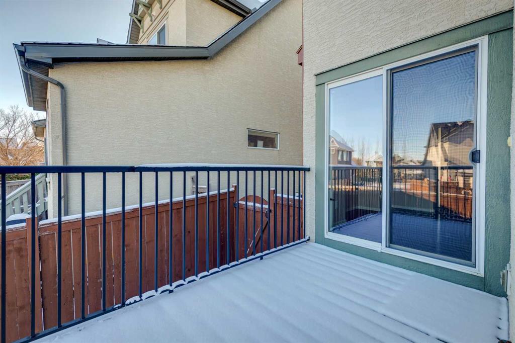 This well-designed semi-detached home in Mahogany blends functionality with comfort, starting with a long front hallway that offers generous closet space for shoes and jackets—ideal for busy households. As you move through the home, you're greeted by a stunning open-to-above area with soaring ceilings and natural light pouring in from windows above. The kitchen features a central island with seating and ample cabinetry. The adjoining dining and living areas are spacious and tied together seamlessly with warm hardwood floors. Directly connected to the dining area is the backyard deck, complete with a gas line hookup for your BBQ as well as landscaping for ease of use and beauty. Upstairs in the home, the primary bedroom offers a private retreat with large windows, a walk-in closet, and a full ensuite. A half wall overlooks the space below, allowing for even more light to filter through the home. Two additional bedrooms, a full bathroom, and a separate laundry room complete the upper level. The fully finished basement adds flexible living space with a full bathroom, large rec area, and custom storage options. The attached garage means protection for your vehicle and additional space for storage. The epoxy coated garage floor offers increased durability and easy cleaning. Additional highlights in this home include central air conditioning, a recently replaced water heater (2025), and convenient paved lane access; excellent benefits for an excellent home! Beyond the home itself, you'll love being just one block from Mahogany West Beach, where the lake, pathways, and park space offer year-round outdoor enjoyment. Quick, convenient access will make using the recreation amenities a breeze! With a true community feel and access to one of Calgary’s best lake communities, this home offers a lifestyle that’s hard to match.