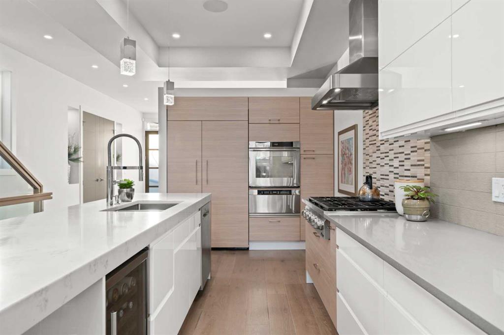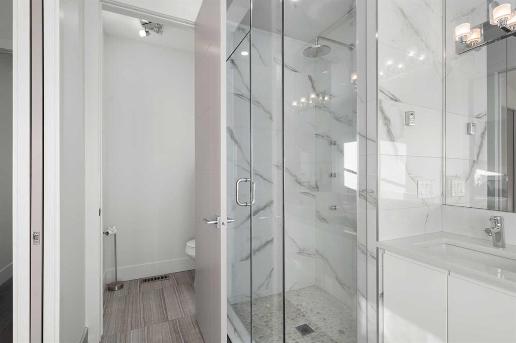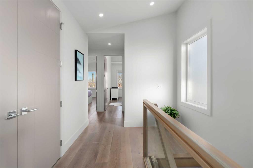 *** OPEN HOUSE ~ Saturday, Feb 14th 1-3pm & Sunday, Feb 15th 1-3pm *** Welcome to 4906 21 Street SW, a beautifully appointed, architecturally striking home on a quiet, tree-lined street in the heart of Altadore. With 5 bedrooms, 3.5 bathrooms, and over 3,300 sq.ft. of developed living space, this home perfectly blends high-end design, functional family living, and timeless style. Step inside to 10-foot ceilings, 8-foot doors, and stunning white oak hardwood floors that span the open-concept main level. A sun-filled flex space at the front offers options for a home office, kids’ playroom, or reading nook. The spacious dining area seamlessly flows into the heart of the home to the chef-inspired kitchen with: custom two-tone cabinetry, quartz countertops and an oversized island with floating bar seating. The gas cooktop, built-in stainless appliances, and ample storage, provide the perfect space for entertaining. The living room is anchored by a designer tile feature wall and gas fireplace. While the private rear mudroom connects to a landscaped yard and double detached garage via a paved alley. The white oak and glass handrail lead you upstairs, where you'll find vaulted ceilings throughout, a dedicated skylit office nook, and convenient upper-floor laundry. You'll notice the white oak hardwood floors continue on the second level. The luxurious primary suite includes: a large walk-in closet with custom built-ins, private balcony retreat and no primary is complete without a spa-like ensuite with steam shower, freestanding soaker tub, dual vanity, and stunning tilework. Two additional well-sized bedrooms each offer walk-in closets and share a large double vanity bathroom. This home provides a ton of built in storage strategically placed throughout the home. The fully developed basement features 9-foot ceilings, a large family/rec room, wet bar, and a second gas fireplace. perfect for cozy nights or entertaining. Two more bedrooms, a full bathroom, a storage room, and under-stair storage. The lower level is ideal for teens, guests, or a home gym. EXTRAS & UPDATES: New energy-efficient A/C (2022)/ Roof- new shingles, underlayment & two new vents (2023)/ Professional front landscaping (2020). Situated in a family-friendly, walkable community, you're just minutes to River Park, top schools, Marda Loop, and downtown Calgary. This is a rare opportunity to own a design-forward home in one of Calgary’s most desirable neighbourhoods. Book your private showing today!