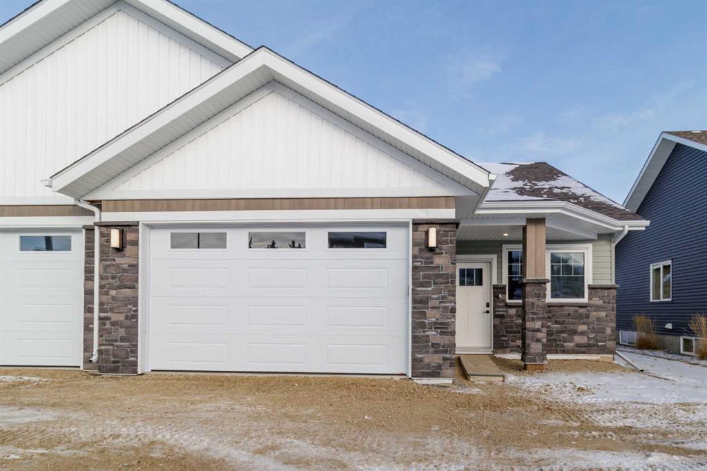 Brand new bungalow-style duplex by Ridgestone Homes! This well-designed home features an open-concept main floor with modern finishes, a spacious living and dining area, and a stylish kitchen complete with a butler’s pantry for added prep space and storage. Cozy up by the fireplace in the inviting living room. The primary suite includes a 5-piece ensuite and walk-in closet, while the second bedroom also offers a walk-in closet. A 4-piece main bathroom, convenient mudroom off the oversized single attached garage, and main floor laundry add to the home’s practical layout. Enjoy a covered front porch entry and a backyard deck—perfect for relaxing or entertaining.