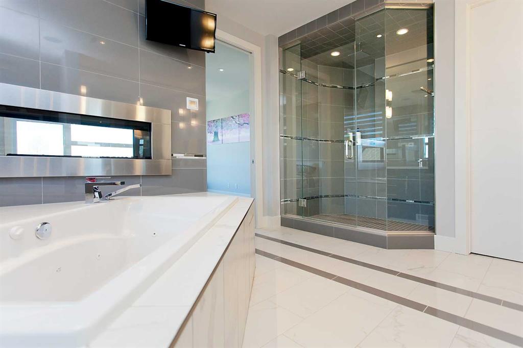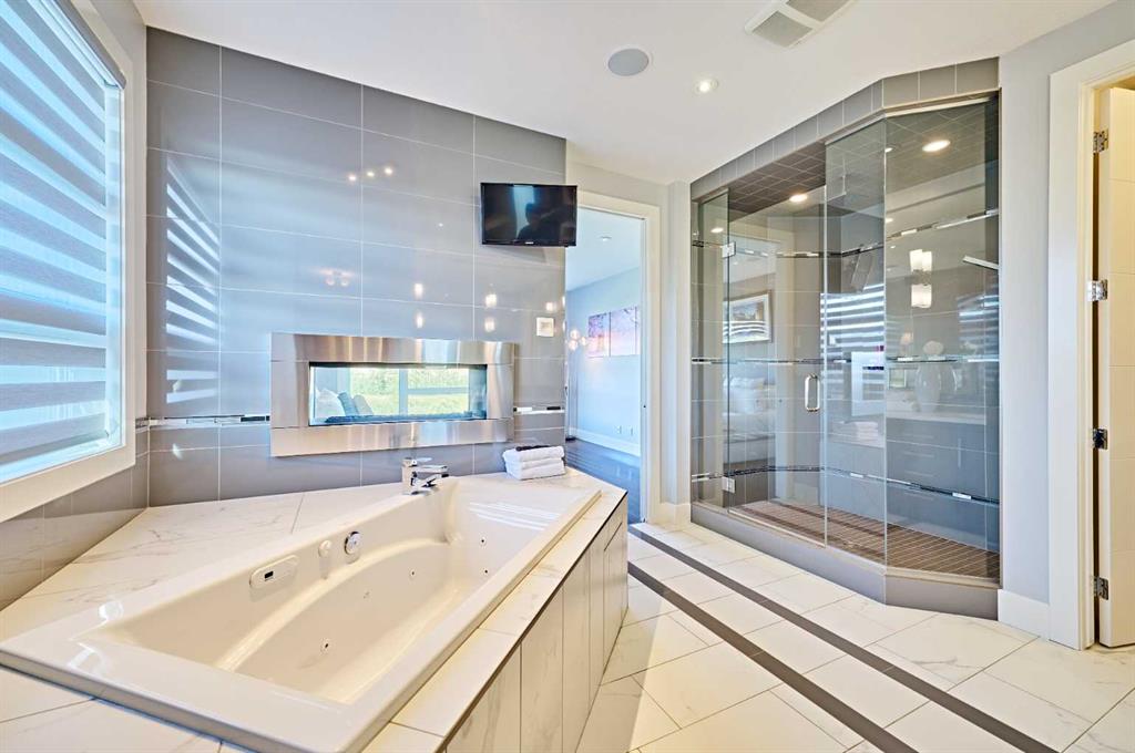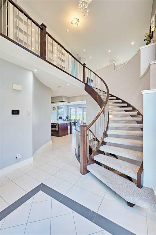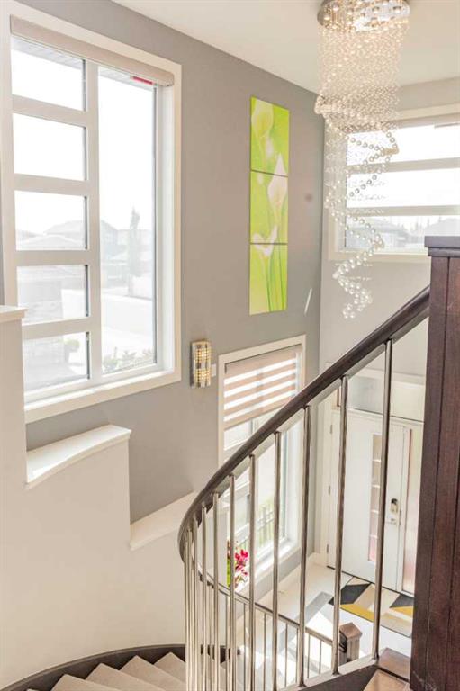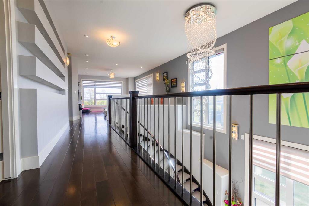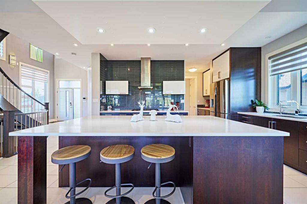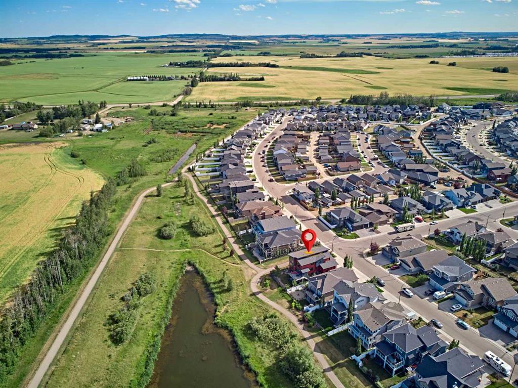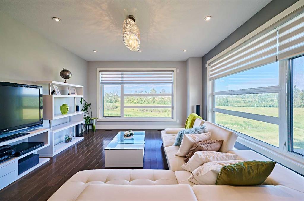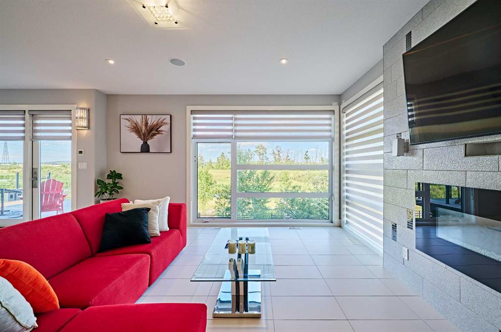 This Original Owner customer built, Modern, Luxury, awards winning home is surrounded by a stunning green belt, natural reserve, and a pond from the back. TRIPLE attached garage with gas heater, fully finished WALKOUT basement. CURVED stairs with open risers going up, in-floor heating on all Three levels. 9 ft high on each level. Air Conditioning. HRV and Sound system throughout the house including the garage and main level deck. This modern contemporary home has more than 3700 sqft living space. The vaulted ceiling is 27 ft. the open-concept design offers breathtaking views from every corner of the house. Sitting in the living room with floor-to-ceiling windows, the magnificent view helps melt away all the stresses. The electric fireplace is surrounded by the artistic titled wall brings you the feeling of such a beautiful life. The kitchen boasts gleaming quartz countertops, a missive panty, and walnut ample cabinetry. Entire main floor is tiled with in-floor heating. Come and experience the essence of luxury and peaceful living. Upstairs offers even more significant views from the master bedroom and family room. you will be energized by the morning sun. A double-sided gas fireplace adds luxury to your bathing and reading rituals. you will be amazed by the architecturally designed walk-in closet, and fully titled jet tub. The laundry room is thoughtfully accessible from the hallway serving two more spacious bedrooms on the upper level. The basement is a paradise for you and your loved ones, featuring a fully equipped home theatre, a wet bar. the spacious living room is a dream place for your musical instruments, or your precious fitness equipment. An additional bedroom provides extra space for family or friends. The entire home has 9' ceilings, 8' solid interior doors. 2022 furnace. Softer water and RO water. electrical rough-in for a backyard hot tub. The yard is fully fenced, professional landscaped, lots of fruit trees and vegetable gardens plus a fishpond. The entire house offers a dream setting for a luxurious lifestyle.