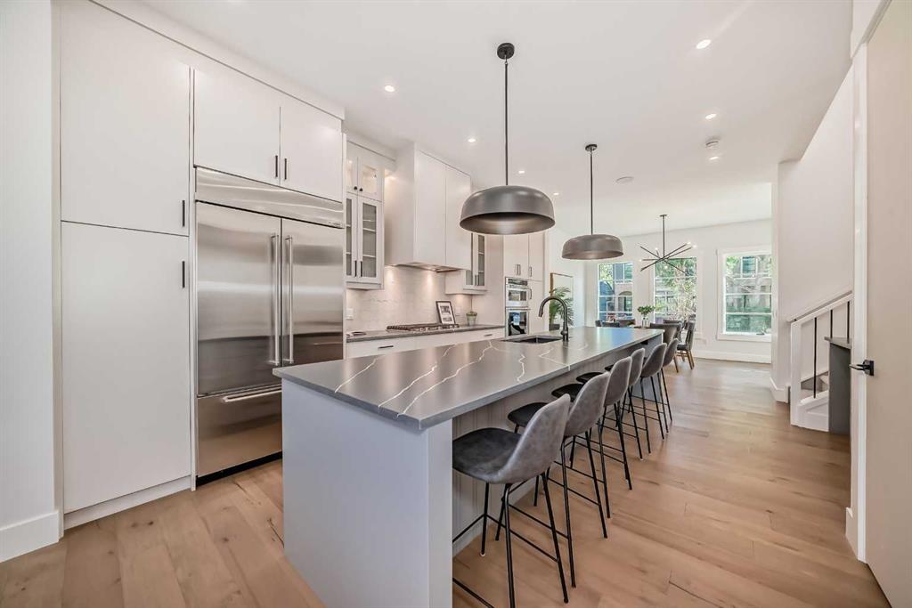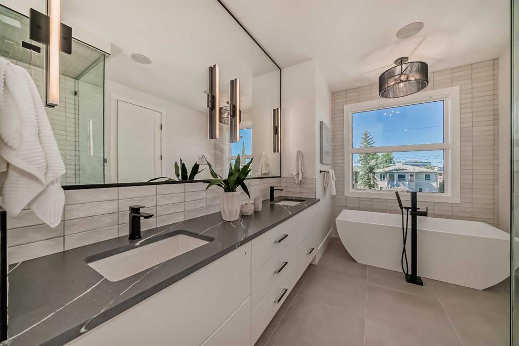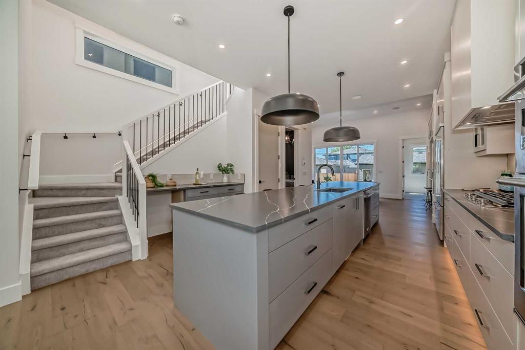 ** OPEN HOUSE: Saturday, Oct, 25th 12-2pm, Sunday, Oct. 26th 12-3pm & Monday, Oct. 27th 3:30-5:30pm ** Welcome to 5005 21A Street—a beautifully designed modern family home featuring 5 bedrooms and 3.5 bathrooms. From the moment you step inside, you're welcomed by a bright and airy dining area that seamlessly flows into the open-concept main floor. The gourmet kitchen is a chef’s dream, complete with high-end appliances, quartz countertops, full-height cabinetry, a spacious island, and a coffee bar for added convenience. The living room boasts soaring ceilings, a cozy gas fireplace, and built-in shelving with a desk, perfect for work or study. Double patio doors open onto the back deck, extending your living space outdoors. A mudroom and a chic powder room complete the main level. Upstairs, the primary suite is a true retreat, featuring a private coffee bar, his and hers walk-in closets, and a luxurious 5-piece ensuite with a soaking tub, double vanity, and walk-in shower. Two additional bedrooms, a full bathroom, and a dedicated laundry room round out the upper floor. Outside, the home’s timeless brick façade exudes curb appeal, while the fully fenced and landscaped backyard offers a private oasis. A double-car garage adds to the home’s practicality. Located just minutes from Marda Loop’s vibrant shops, restaurants, and amenities, this home effortlessly combines style, comfort, and functionality. Don’t miss out—schedule your showing today! Please note that the photos shown are from the other side of the duplex. While there may be slight variations, the layout, finishes, and design are nearly identical, offering the same modern style and high-end features.