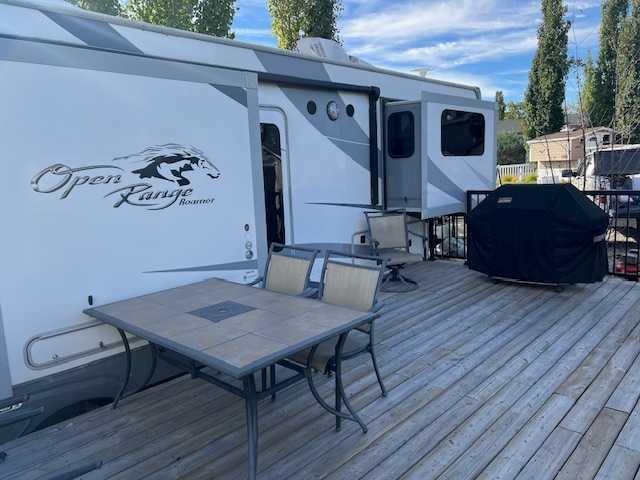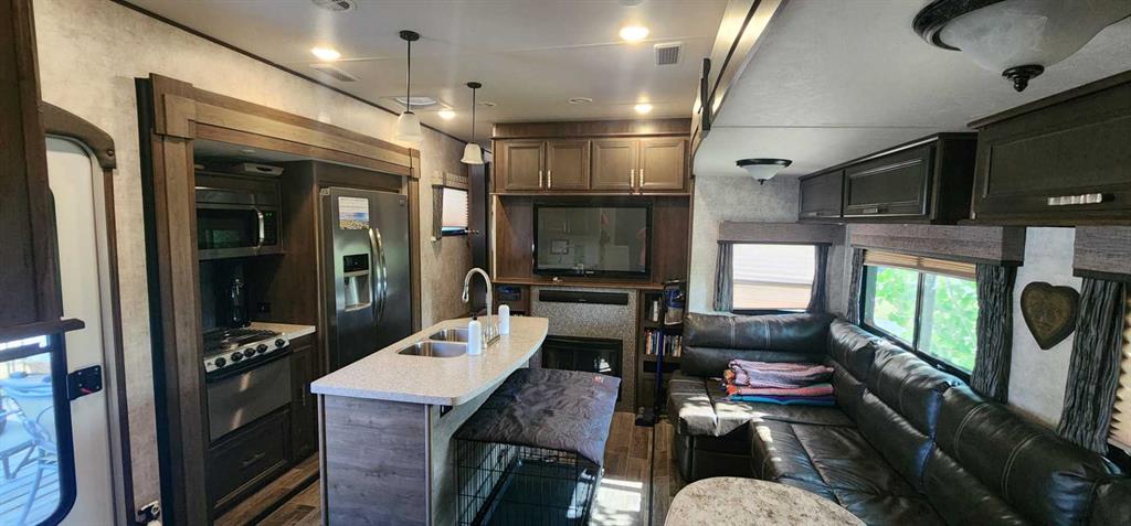 Welcome to Gleniffer Lake Resort & Country Club, the ultimate destination for relaxation and recreation. Get ready to enjoy the upcoming camping season in comfort and style with this exceptional recreational property located just steps from the west pool and hot tub & playground. This treed private lot backs onto green space, offering both convenience and breathing space in a peaceful family setting. This great property includes a 2017 Highland Ridge Open Road, 42’ fifth-wheel RV featuring five slides, 2 bedrooms, 2 bathrooms, a full-size fridge with ice & water, & 2 Air conditioning units providing an exceptionally spacious and well-designed interior, ideal for extended stays or entertaining. Check out the floorplan. The custom-built west facing deck, creates the perfect outdoor space for relaxing, BBQing and visiting with friends and family. Also included is a 2012 Club Car, four-seater electric golf cart, making it easy to navigate the resort and fully enjoy all that Gleniffer Lake has to offer. Gleniffer Lake Resort & Country Club offers many amenities include an indoor pool/ hot tub and 2 outdoor swimming pools/ hot tubs, a challenging 9-hole golf course & clubhouse, private lake access with beach and marina, The Landing restaurant and lounge, coin laundry, fitness centre, recreation facilities, tennis/ pickleball/ basketball courts, playgrounds, dog park, walking trails & more. The general store is centrally located and offers many necessities as well as other treats & goodies. Gleniffer Lake is a gated community with on site security and offers year-round activities & community events. Whether you’re looking for a weekend escape or a seasonal retreat or retirement living, this turnkey property offers an outstanding opportunity to enjoy resort living at its finest. Don’t miss your chance to own a premium lot in one of Central Alberta’s most desirable recreational communities located just 20 minutes west of Innisfail making it a short drive to and from major centres in Alberta. Call today!