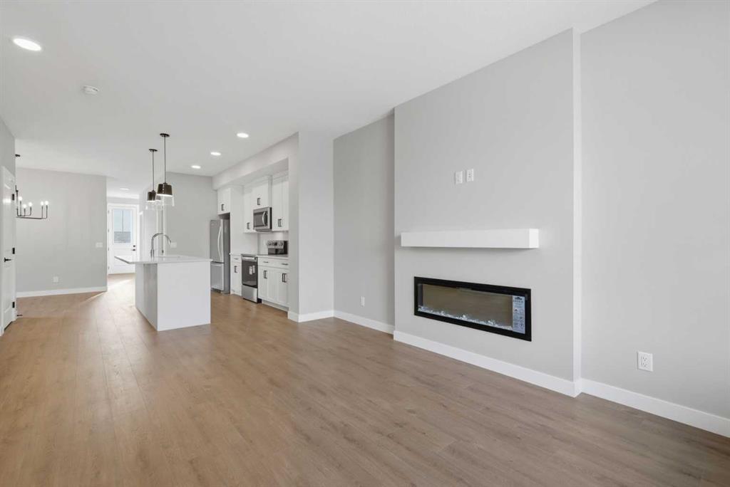 1869 SQ.FT. | 4 BEDS | 3.5 BATHS | MAIN FLOOR BED & BATH | SPICE KITCHEN | REAR DECK | HARDIE BOARD SIDING | SIDE ENTRANCE + 9" BASEMENT CEILING | BONUS ROOM | HUGE PIE SHAPED LOT | SE FACING BACKYARD | FRONT LANDSCAPING INCLUDED | Built by Crystal Creek Homes, this is one of the best values currently available in Belvedere, offering more space and more hard-to-find features than comparable homes at this price point. Set on a rare pie-shaped lot with a huge southeast facing backyard and completed 10’×10’ deck, this home delivers outdoor space that most Belvedere homes simply don’t have. Inside, the light and airy modern finishings create an inviting feel across 1,869 sq ft, thoughtfully designed for growing or multi-generational families with 4 bedrooms and 3.5 baths, including a main-floor bedroom and full bath, a bonus room, and a great room with fireplace. The spice kitchen, durable Hardie board siding, and separate side entrance with 9’ foundation add real long-term value, with strong potential for a future legal basement suite (subject to City approval and permitting). Located on a quiet street, just steps from the future school site and soccer field, and minutes from Costco, Walmart, Cineplex, restaurants, shopping, Chestermere, and quick access to Stoney Trail, this is a home that offers everyday convenience. Homes with this combination of lot size, layout, and upgrade package rarely come available—and it comes with the added confidence of a full builder warranty. Book your showing today!