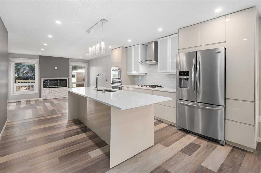 OPEN HOUSE Saturday, April 25 1:00 pm to 3:00 pm Renovated bungalow in Woodbine with 3,000 sq feet total living space up and down! This home was extensively renovated in 2018 with open concept design. Stainless steel appliance package includes gas cook top, wall oven & microwave, refrigerator and dishwasher. The big kitchen island is great for entertaining and anchors the main living area between the living room with new triple pane windows facing the street and a family room at the other end featuring a central electric fireplace. The family room windows were also recently upgraded to triple pane. The doors off the family room lead to the deck and backyard. There are 3 bedrooms on the main floor with an en-suite in the primary bedroom & a main bathroom. The fully developed basement features a large rec room, laundry room, bedroom & a 4-piece bathroom. Vinyl plank flooring was just installed in the basement. The whole home was recently painted and the attic insulation upgraded. Located close to school, parks, amenities & transportation. Shows 10/10. Come view this home today!!