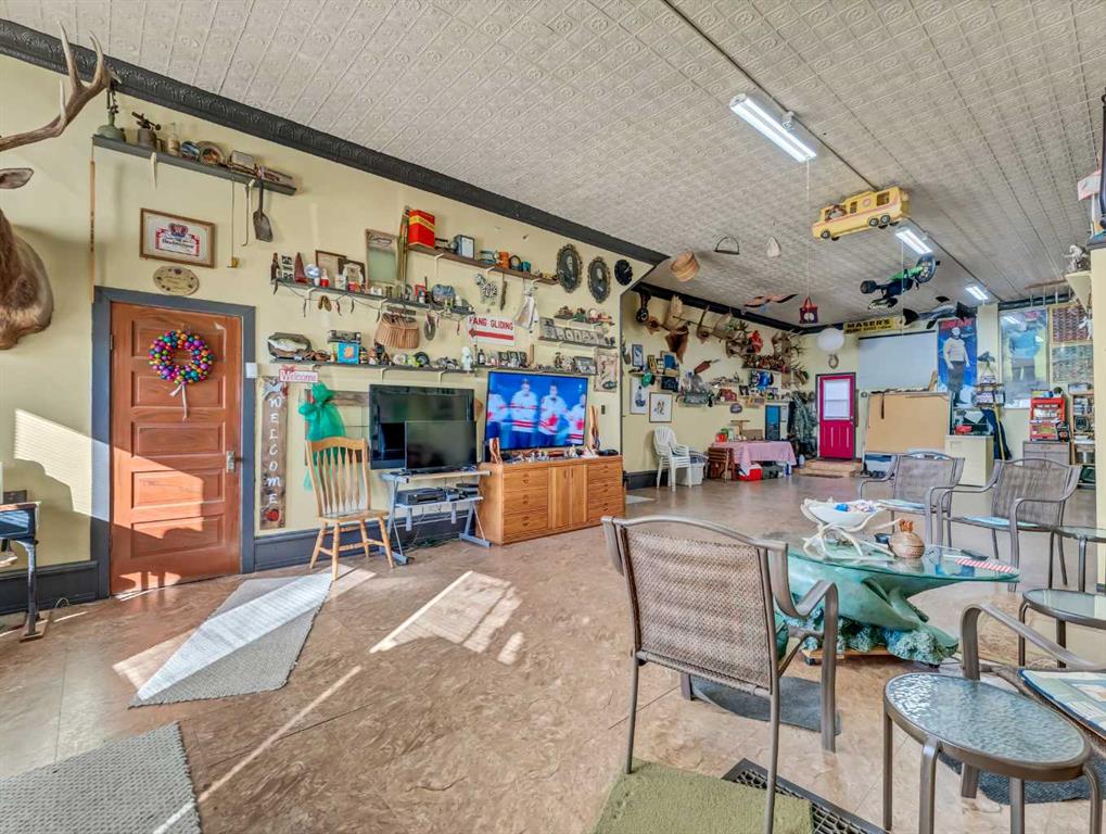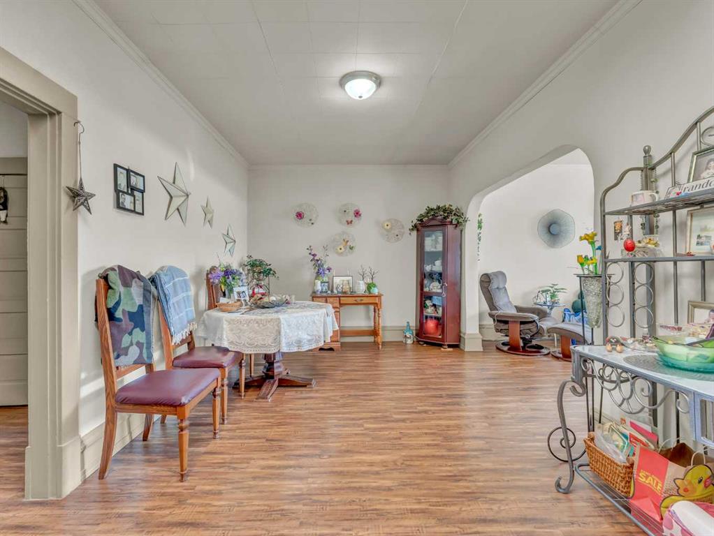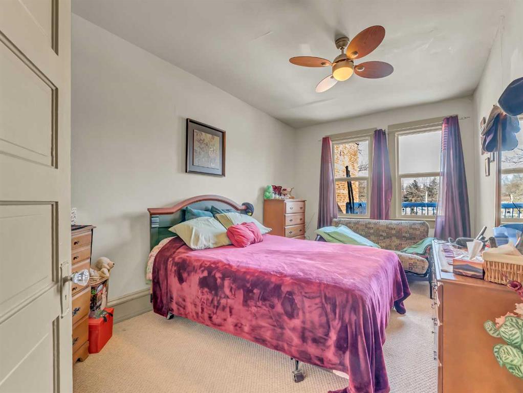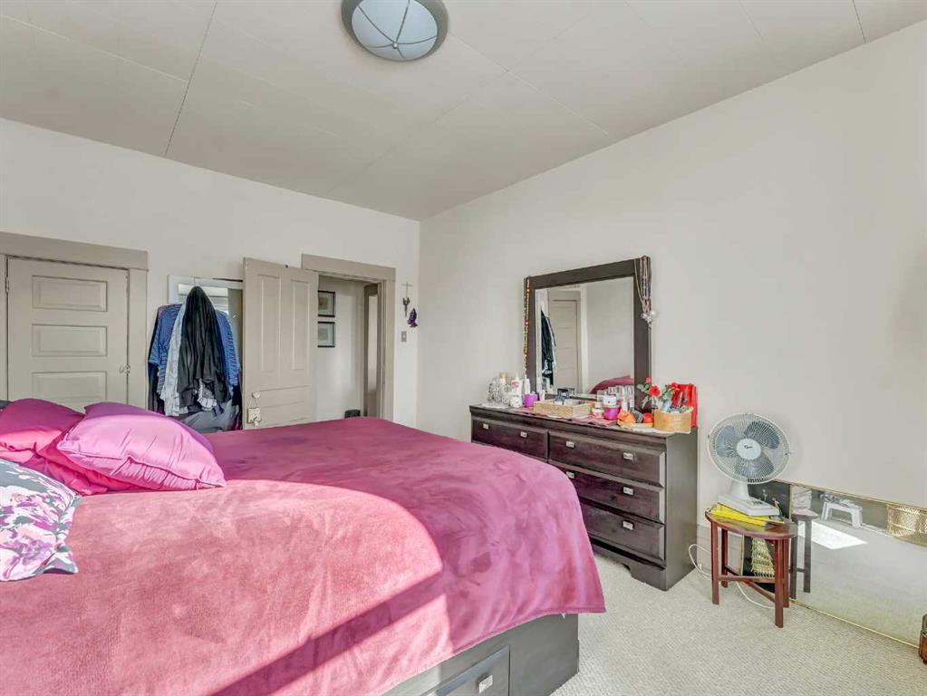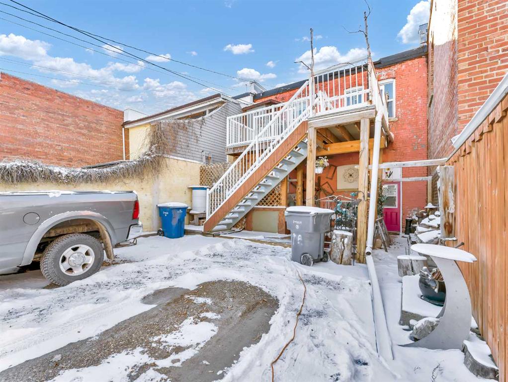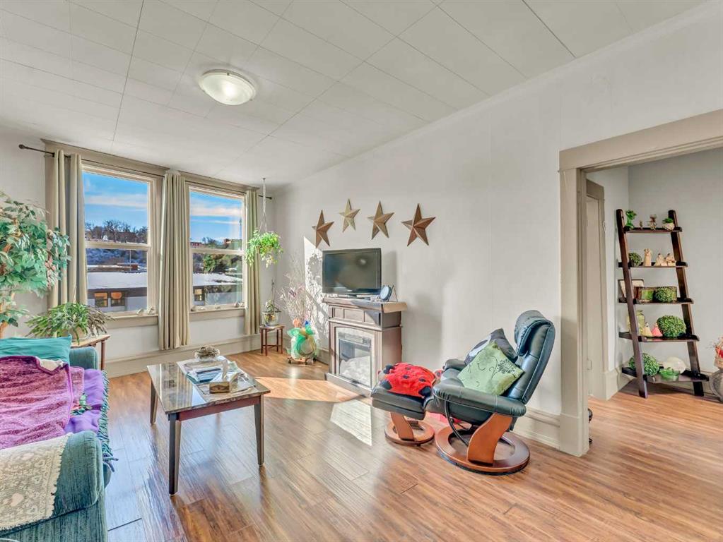 Prepare to be captivated by this truly unique mixed-use property offering exceptional flexibility and diverse revenue opportunities! Zoned for Commercial/Residential use, this solid brick building features an updated 2-bedroom apartment upstairs, a wide open main floor retail or commercial space, and a full basement for added functionality. The upper level boasts 1212 sq ft of thoughtfully renovated living space, including a spacious kitchen with full appliance package, 4-piece bathroom, in-suite laundry, updated windows, and a newer skylight. High 9-foot ceilings and tall windows fill the suite with natural light, highlighting its timeless character and warmth. The main floor offers 1212 sq ft of wide open space with soaring 12-foot tin ceilings —perfect for retail, office, studio, or recreation. Previously operated as a successful appliance business, this area is ready for your vision, whether you lease it out or run your own business. Downstairs, a 1168 sq ft full basement provides ample room for a workshop, hobby room, or extensive storage. Step outside to enjoy a spacious two-tiered deck, ideal for relaxing or entertaining. Rear off-street parking accommodates multiple vehicles plus an RV. Recent updates include a resurfaced roof, modernized wiring, and plumbing. This exceptional property is move-in ready and offers the rare chance to live and work under one roof, generate rental income, or build your investment portfolio. Endless possibilities await the next proud owner!