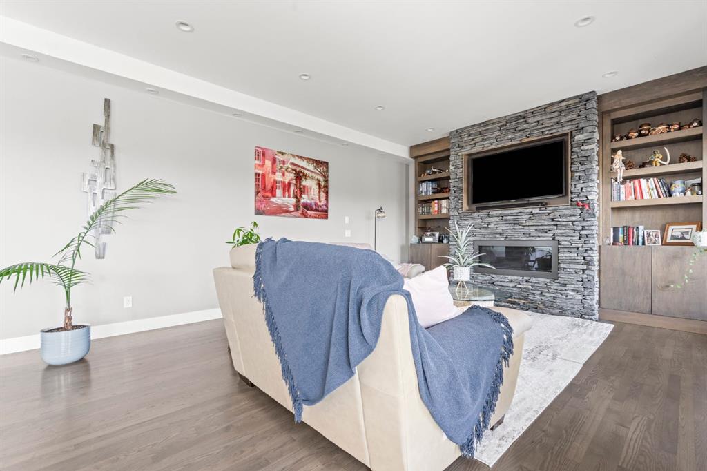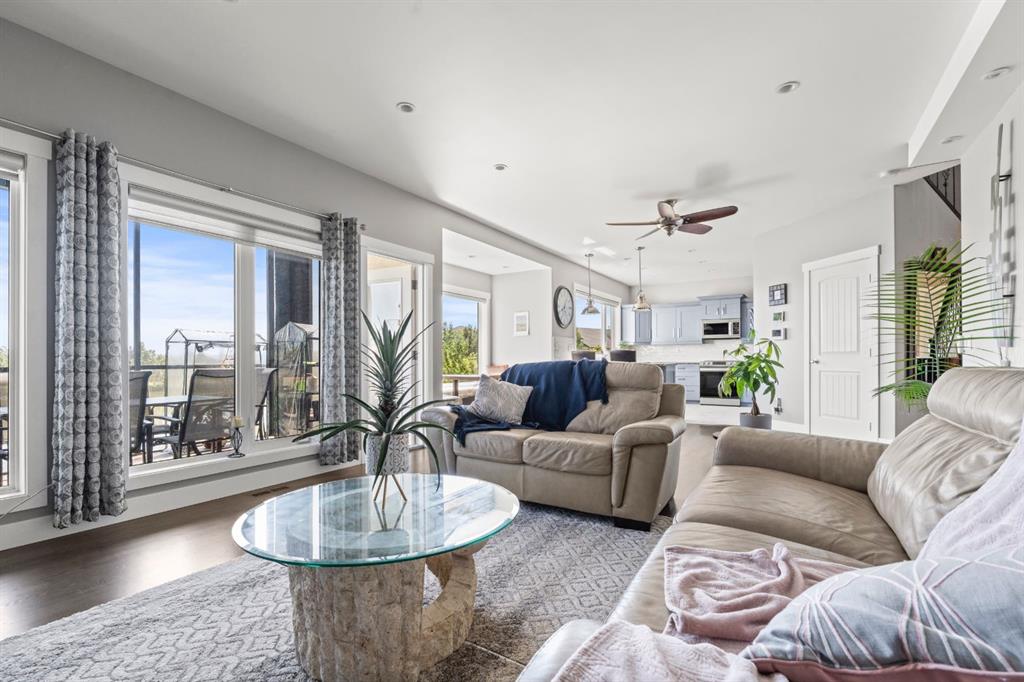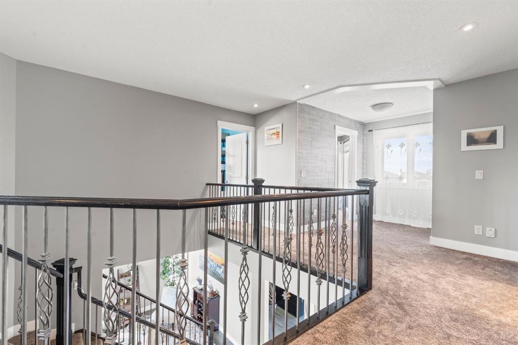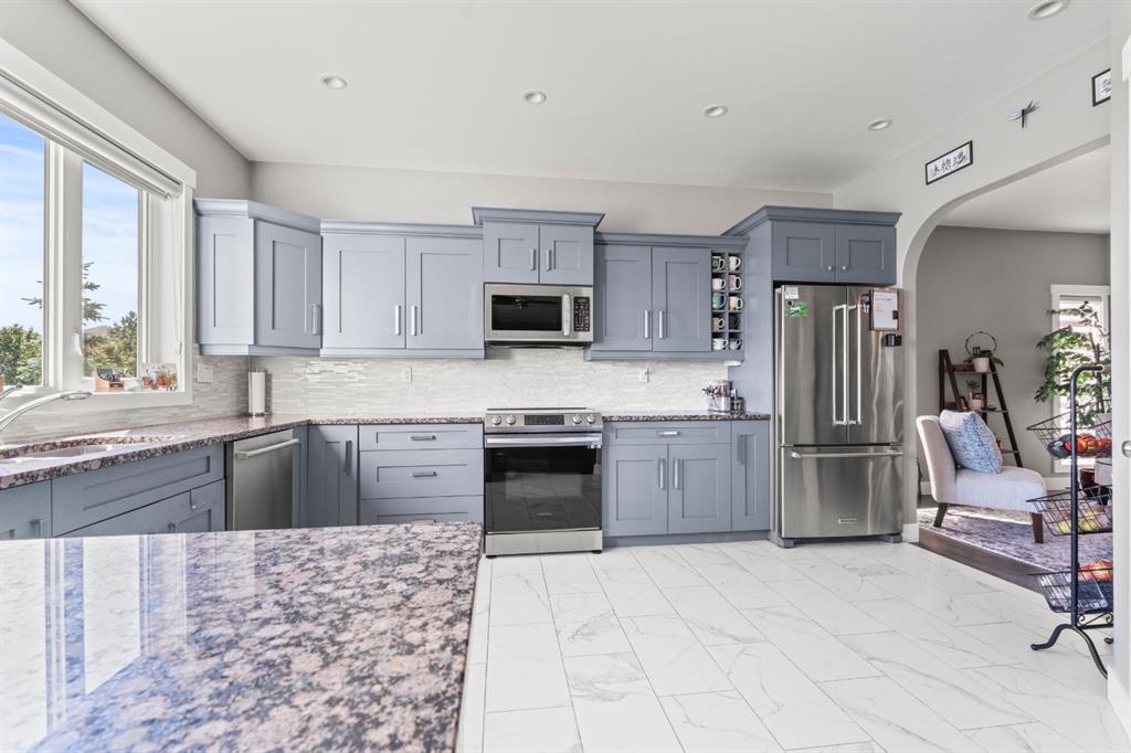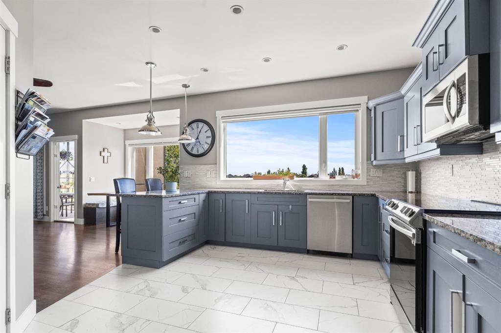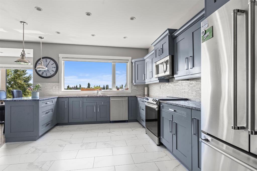 Welcome to this gorgeous 2-storey walk-out in Highwood Lake, backing onto a peaceful pond! This stunning 5-bedroom, 3.5-bath home offers over 3,800 sq. ft. of developed living space, a double oversized garage with workshop, and numerous upgrades throughout. Tucked away on a quiet cul-de-sac, it’s perfect for a large family looking to embrace an active lifestyle with walking trails and amenities just steps away. The main floor features a bright office, laundry room, elegant dining area, and an open-concept living and kitchen space overlooking the water. The kitchen boasts stylish grey cabinetry, granite countertops, stainless steel appliances (including an induction oven), and a spacious walk-in pantry. Enjoy morning coffee in the dining nook that wraps around the sizeable bay window, while taking in the beautiful views, or gather in the large living room with a gas fireplace. Step out onto your private screened-in deck — the perfect place to relax and soak up the serene pond setting. Upstairs you will go up a huge open staircase with wrought iron spindles where you will find four generous bedrooms and two full baths. The primary suite is a true retreat with its own private balcony, a dream walk-in closet, and a nice 5-piece ensuite featuring double sinks, a soaker tub, and a separate shower. The fully developed walk-out basement offers even more living space with a fifth bedroom, a full bath, a second full kitchen with granite countertops, a fridge and stove, a large family room, and plenty of storage — ideal for older kids, in-laws, or guests wanting their own space. Outside, you’ll love the beautifully landscaped yard with two retaining walls, a cozy firepit area, a lower-level deck, and mature trees, fruit trees and shrubs providing privacy and charm. Additional highlights include central air conditioning, 9'foot ceilings on main floor and basement, in-floor heating in kitchen of the walk-out basement, refinished hardwood floors on the main level, and new carpet upstairs. This beautiful home must be seen to be appreciated — book your private showing today!
