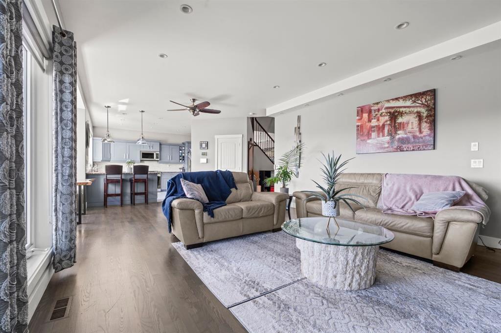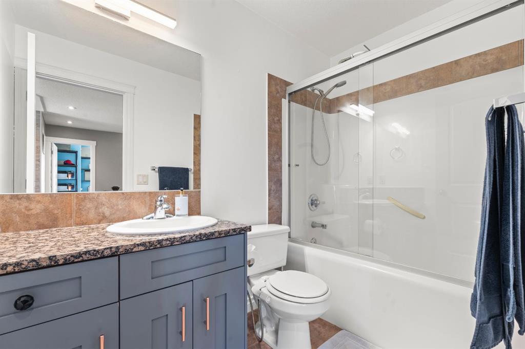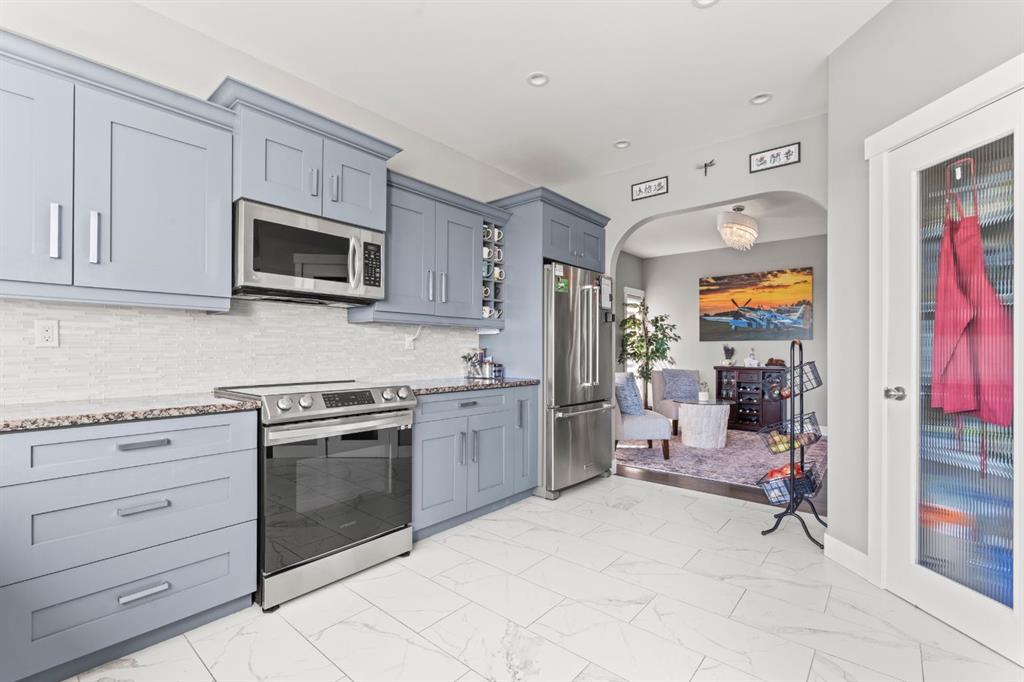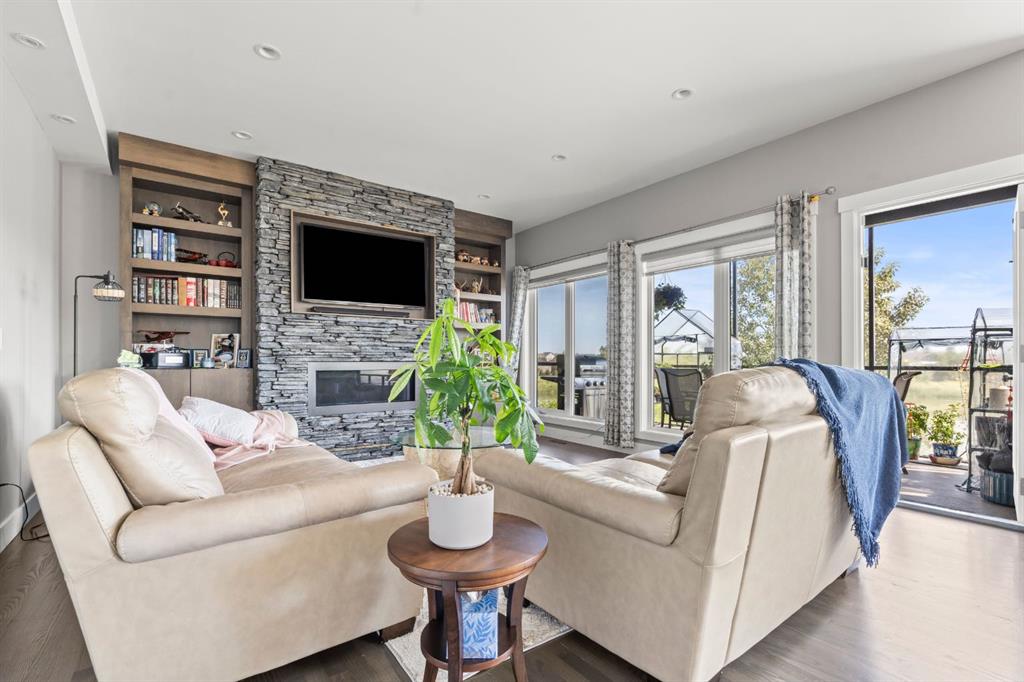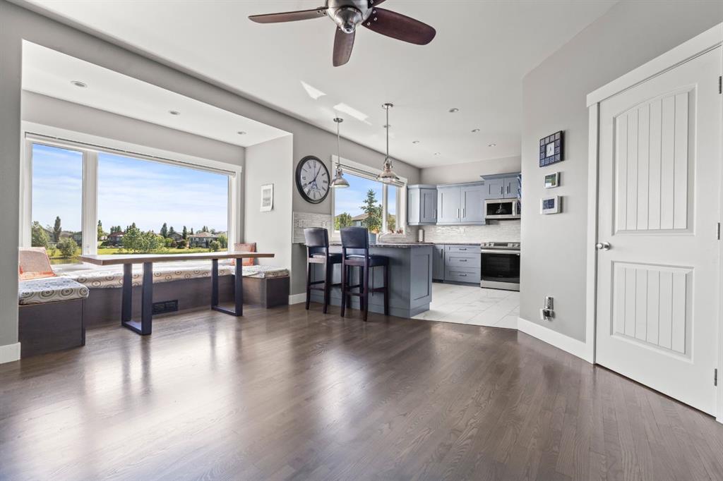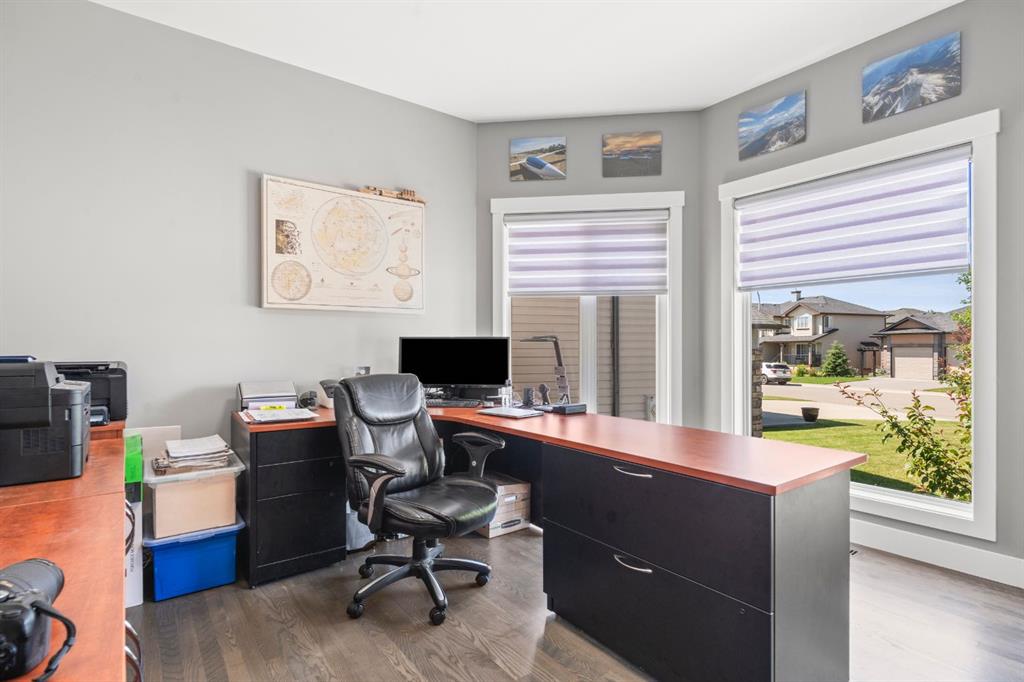 Welcome to this gorgeous 2-storey walk-out in Highwood Lake, backing onto a peaceful pond! This stunning 5-bedroom, 3.5-bath home offers over 3,800 sq. ft. of developed living space, a double oversized garage with workshop, and numerous upgrades throughout. Tucked away on a quiet cul-de-sac, it’s perfect for a large family looking to embrace an active lifestyle with walking trails and amenities just steps away. The main floor features a bright office, laundry room, elegant dining area, and an open-concept living and kitchen space overlooking the water. The kitchen boasts stylish grey cabinetry, granite countertops, stainless steel appliances (including an induction oven), and a spacious walk-in pantry. Enjoy morning coffee in the dining nook that wraps around the sizeable bay window, while taking in the beautiful views, or gather in the large living room with a gas fireplace. Step out onto your private screened-in deck — the perfect place to relax and soak up the serene pond setting. Upstairs you will go up a huge open staircase with wrought iron spindles where you will find four generous bedrooms and two full baths. The primary suite is a true retreat with its own private balcony, a dream walk-in closet, and a nice 5-piece ensuite featuring double sinks, a soaker tub, and a separate shower. The fully developed walk-out basement offers even more living space with a fifth bedroom, a full bath, a second full kitchen with granite countertops, a fridge and stove, a large family room, and plenty of storage — ideal for older kids, in-laws, or guests wanting their own space. Outside, you’ll love the beautifully landscaped yard with two retaining walls, a cozy firepit area, a lower-level deck, and mature trees, fruit trees and shrubs providing privacy and charm. Additional highlights include central air conditioning, 9'foot ceilings on main floor and basement, in-floor heating in kitchen of the walk-out basement, refinished hardwood floors on the main level, and new carpet upstairs. This beautiful home must be seen to be appreciated — book your private showing today!
