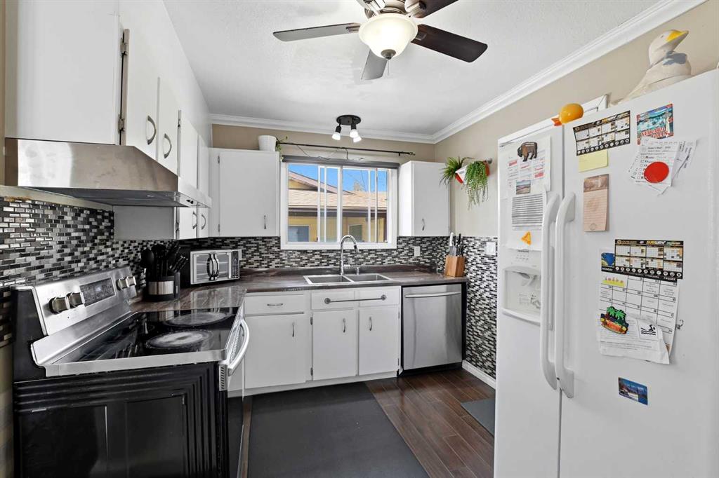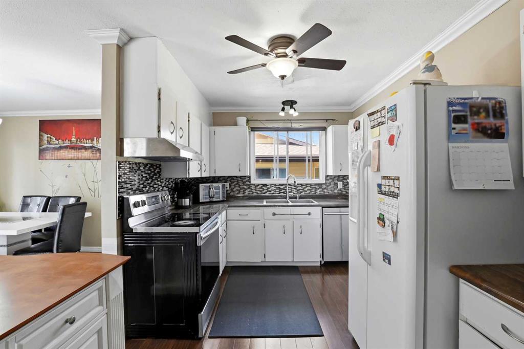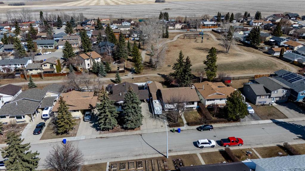 Welcome to this well-maintained 4-level split in a family-friendly area of Olds, backing directly onto the highly sought-after Frank Wong Park. With 4 bedrooms, 2 full bathrooms, and approximately 1,300 sq.ft. of living space, this home offers a functional layout that works especially well for young families. The main level features a bright kitchen, dining, and living area highlighted by large south-facing windows that flood the space with natural light. Mature spruce trees in the front yard provide added privacy and shade, creating a comfortable and inviting atmosphere throughout the day. Upstairs, you’ll find three bedrooms and a full bathroom, while the basement level offers a great family hangout space—currently set up as a kids’ rec room—along with a fourth bedroom and an additional full bath. The lowest level remains unfinished but includes large south-facing windows, offering excellent potential for future development with plenty of natural light. Over the past few years, the home has seen several updates, including fresh paint, flooring improvements, and some newer appliances. The roof and shingles are in great condition, adding peace of mind for the next owner. Outside, the property features a driveway with an attached carport and a spacious backyard with ample room to build a garage if desired. Included in the purchase is a large, newer garden shed, which is fantastic for extra storage! The direct access to Frank Wong Park is a standout feature, offering playground equipment and a popular toboggan hill just steps from your backyard. A solid home in a great location with room to grow—this is one you won’t want to miss.