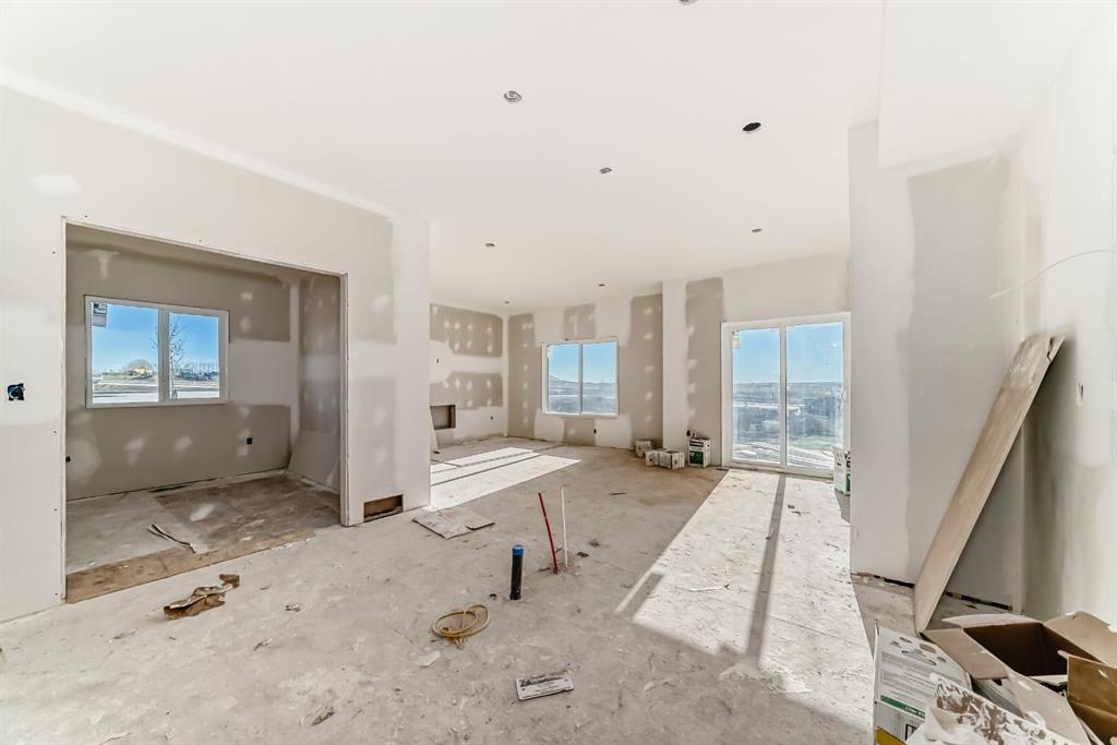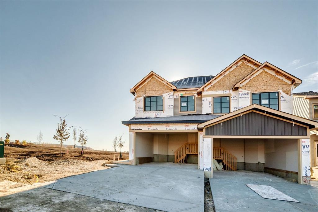 ** Open House Saturday October 25 & Sunday October 26 12-3pm ** Discover the Cambridge by Paragon Custom Homes. A stunning 1,895 sq ft corner duplex situated on a premium lot with a park right beside you in the desirable West Hawk community. This beautiful home offers abundant natural light and 9ft ceilings throughout. Inside, you'll be greeted by a bright foyer with engineered hardwood flooring and large windows. The walkthrough mudroom with built in storage connects effortlessly from the double attached garage into the pantry, keeping you organized. The spacious kitchen features stainless steel appliances, quartz countertops, a generous island, and custom cabinetry. A large main floor office with feature walls provides versatile space for work, study, or a cozy playroom. Relax in the inviting living room with a electric fireplace, or step out to the deck and backyard. Upstairs, you'll find a great bonus room, two generously sized bedrooms, a family bathroom, laundry room with convenient built in storage, and the primary retreat boasting a vaulted ceiling, a luxurious 5-piece ensuite with a soaker tub, and a walk-in closet with custom built ins. An additional side entrance offers extra convenience for future developments or separate living spaces. Located close to schools, educational facilities, a variety of amenities, and easy access east to Calgary and west to the mountains, this home combines modern updates with classic charm in a sought after neighborhood. Just minutes from excellent dining, green spaces, and river walking paths, this remarkable property is ready for you to call home. Don’t miss your chance, schedule your showing today!