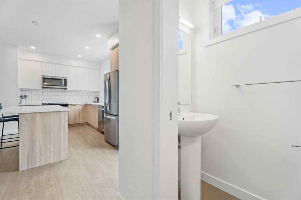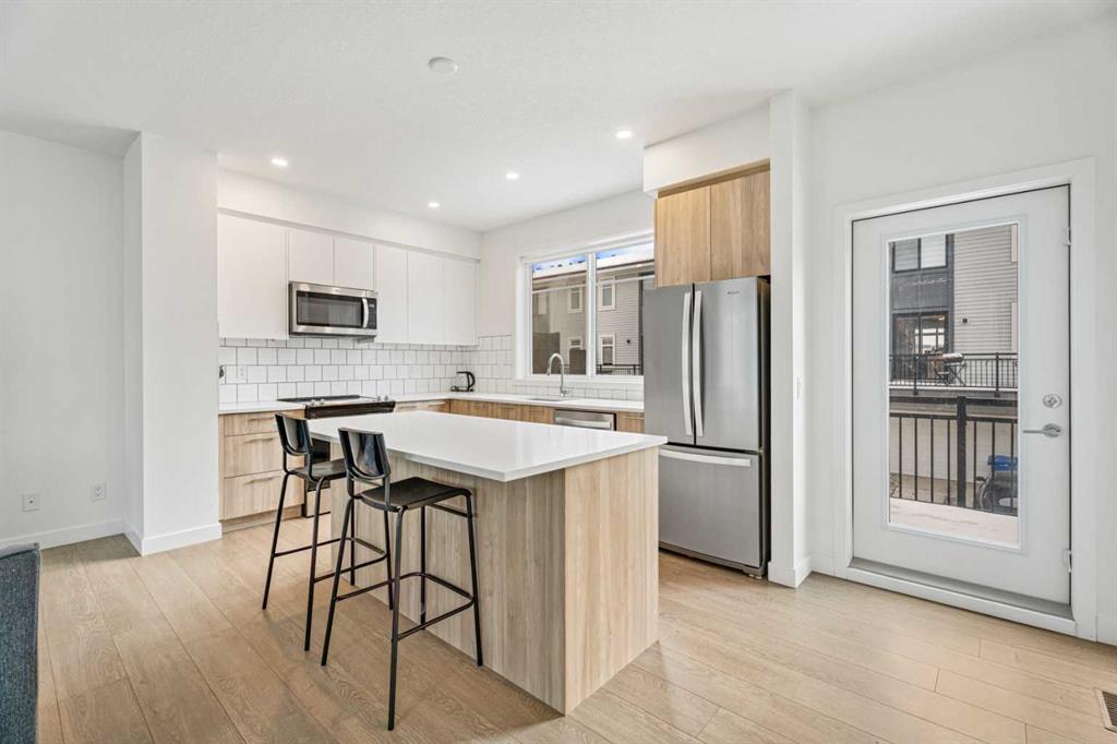 This beautiful 2-bedroom, 2.5-bath townhouse in the desirable community of Belmont offers comfort, style, and convenience. The main floor features an open-concept layout with elegant luxury vinyl plank flooring and large windows that fill the space with natural light. The modern kitchen is perfect for cooking enthusiasts, showcasing stainless steel appliances, stunning cabinetry, a tiled backsplash, quartz countertops, and a spacious central island. A stylish 2-piece bathroom with a contemporary vanity and a generous balcony equipped with a BBQ gas line complete the main level. The upper floor includes two well-sized bedrooms. The primary suite offers large windows, a walk-in closet, and a private 3-piece ensuite. This level also includes a convenient laundry room and a full 4-piece bathroom. On the ground level, you’ll find a beautifully landscaped and fenced front yard, a spacious main entry area, and a double attached garage with a man door for added accessibility. This property offers excellent rental appeal, especially for tenants who value easy access to parks, green spaces, and nearby bike paths—an ideal setup for those seeking an active lifestyle in a rapidly developing community.