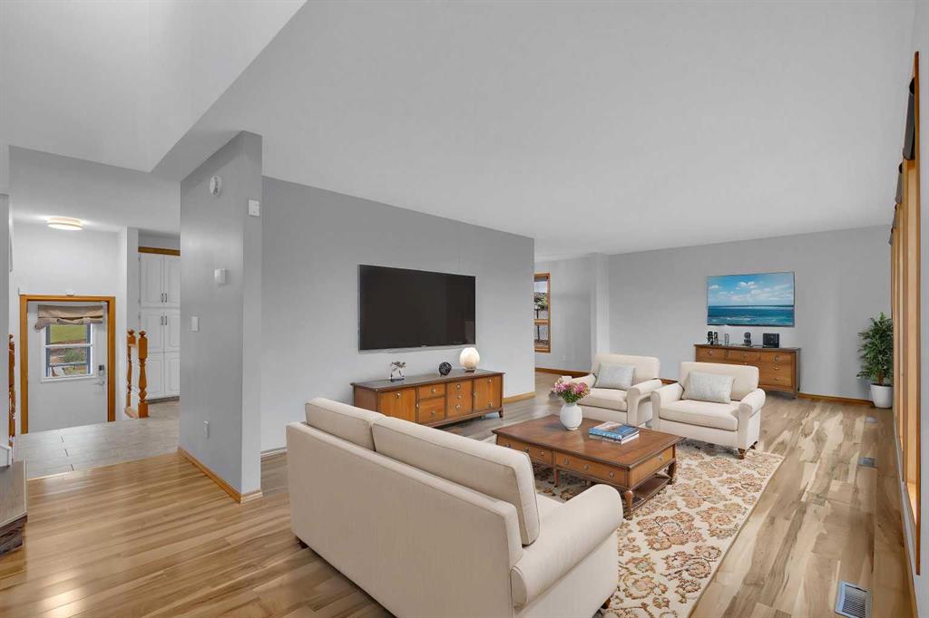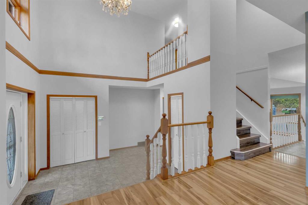 Experience the perfect blend of country tranquility and city convenience in the sought-after community of Springvale Heights, just minutes from Red Deer. This remarkable acreage captures sweeping views of the Rockies and the city, offering both peace and proximity. Built with architectural foresight and quality, the home features 9” energy-efficient walls and a long list of recent renovations. Step inside through the impressive front entryway, where soaring ceilings set the tone for the elegance throughout. Designed with both comfort and functionality in mind, the home offers three convenient entrances. The chef-inspired kitchen is the heart of the home—beautifully upgraded with granite countertops, modern stainless steel appliances (including a gas stove), redesigned cabinetry, crown molding, and a stylish backsplash. A welcoming dining area and formal living room, both with upgraded flooring, create the perfect space for gatherings. The cozy family room features a wood-burning fireplace and leads to a versatile multi-purpose area with extra storage, a renovated laundry room, a bathroom, and direct garage access. The main-floor primary suite is your private retreat, showcasing a spa-inspired ensuite with marble counters, a jacuzzi tub, and a walk-in closet. Upstairs, a second primary suite features balcony access—perfect for sunset views or watching fireworks—plus an elegant ensuite with a double quartz vanity and subway-tiled shower/tub combo. Two additional bedrooms and another full bathroom complete the upper level. The lower level is ideal for family fun or entertaining—perfect for a home theatre, games room, or teenage hangout. It also includes a large mechanical/storage room with two brand-new furnaces and a new hot water tank. Car enthusiasts will love the attached heated garage with radiant heat, 14-foot ceilings, new 10x10 overhead doors, and 220V wiring. Outside, enjoy the two expansive west-facing decks, mature landscaping, fruit trees, and a fully fenced yard—ideal for kids, pets, and entertaining. There’s ample space for trailers, campers, and extra parking. Located just three miles from Red Deer, this property offers pavement right to your door, access to school bus service, and community amenities like a playground and ball diamonds. With grocery and food delivery available, you truly can have the best of both worlds. This isn’t just a home—it’s a lifestyle. Come see why Springvale Heights is one of Central Alberta’s most desirable acreage communities.