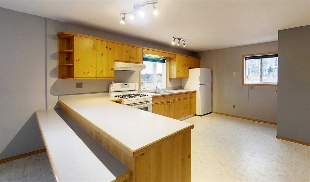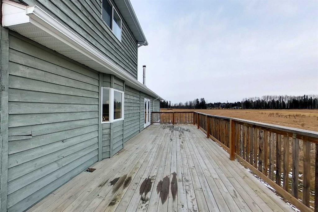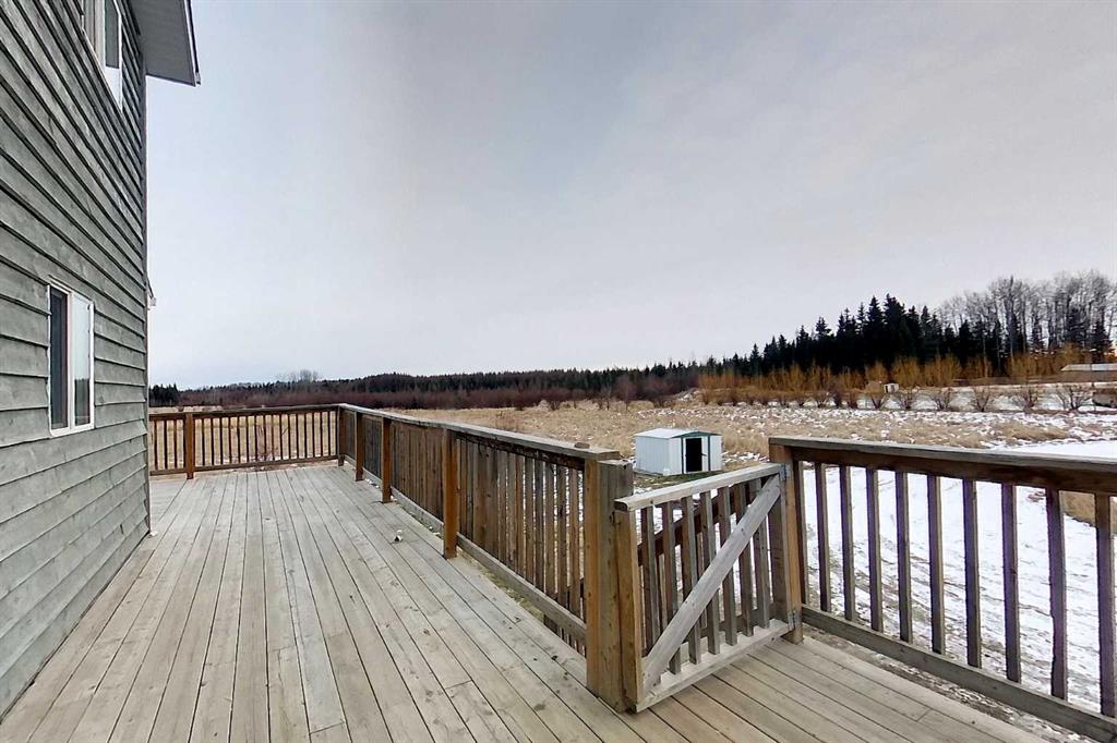 Welcome to this 4 bedroom, 2 bathroom open concept home. Coming through the bright foyer you enter into the large kitchen which is completely open to the dining room and the living room. The dining room has a wood burning stove and garden door exiting onto the large wrap around deck. 2 bedrooms, a 4 pc bathroom and a separate laundry room complete the main floor. Upstairs you will find the primary bedroom, a 2 pc bathroom and a secondary bedroom. Downstairs is wide open for you to finish exactly as you wish and has 9' walls, rough in plumbing for a 3rd bathroom and new windows. The furnace, hot water tank, sump pump and electrical (basement) is all new in 2018 as is the water well, sewer and underground gas line. This home is perfect for family gatherings and is located minutes from Edson and all amenities. Situated on 3.81 acres it is the perfect size to start country living!