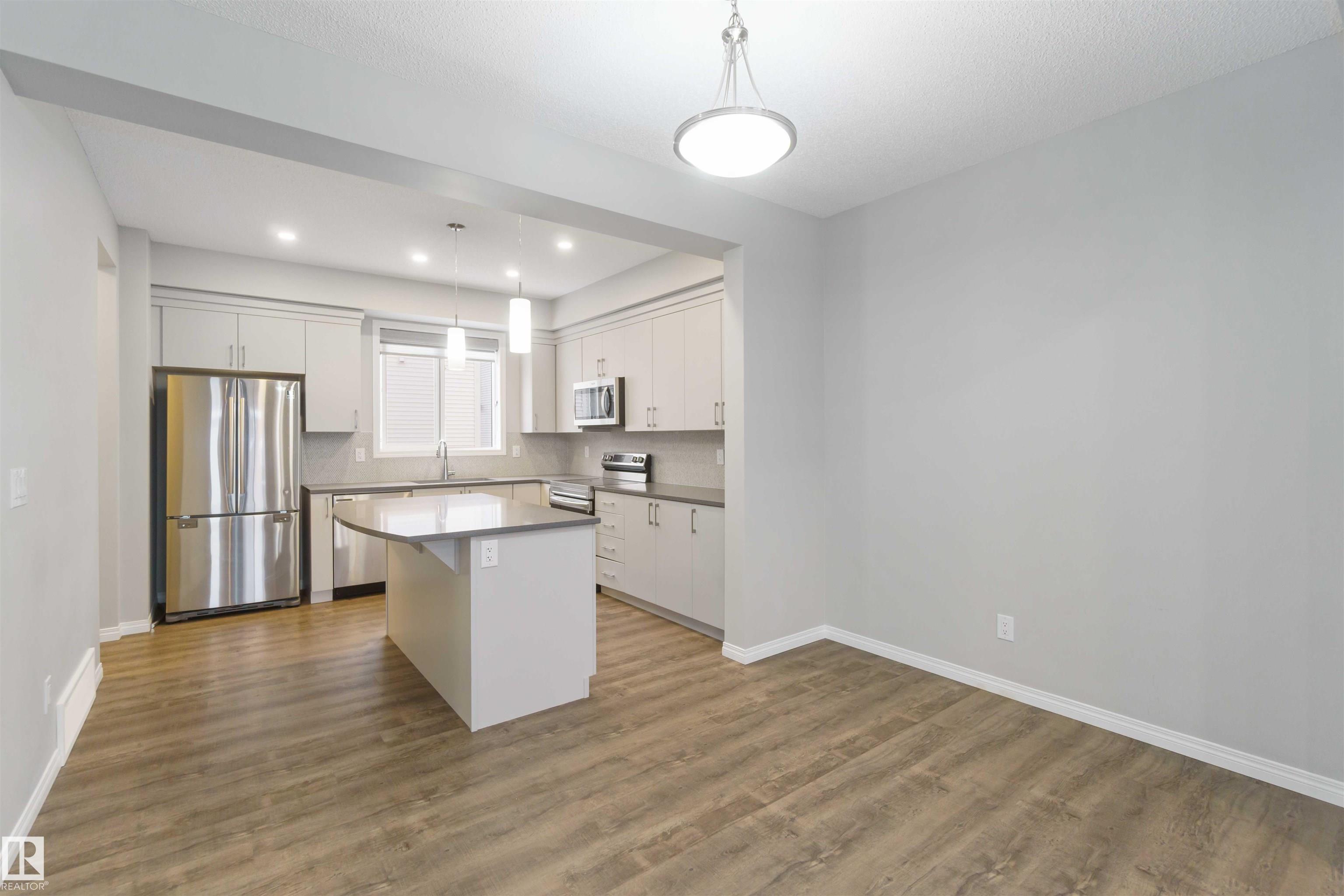 Welcome to this stylish 3-storey townhouse in the heart of Walker, offering 3 bedrooms, 2.5 baths and 1,296SqFt of bright, modern living. The ground level features a spacious double attached garage and a versatile den—perfect for a home office, workout space, or quiet retreat. Head upstairs to the open-concept main level, where large windows fill the space with natural light, and the flowing layout creates the ideal setting for both everyday living and entertaining. The kitchen offers great functionality and sight-lines to the dining & living areas, making it easy to stay connected while cooking or hosting. On the top floor, you’ll find three comfortable bedrooms, including a lovely primary suite with its own ensuite. Located just minutes from the nearby shopping centre, you’ll enjoy quick access to groceries, dining, and daily conveniences. Commuting is a breeze with the Anthony Henday only minutes away, and the airport is a simple 15-min drive—perfect for frequent travellers. All this home needs is YOU!