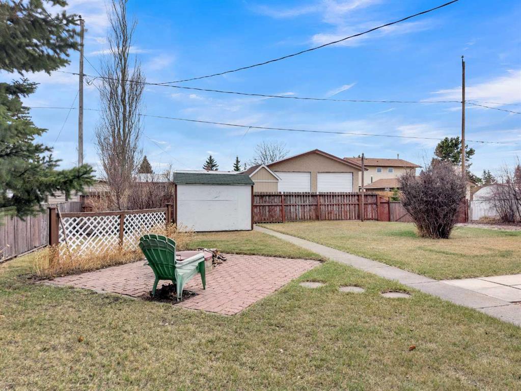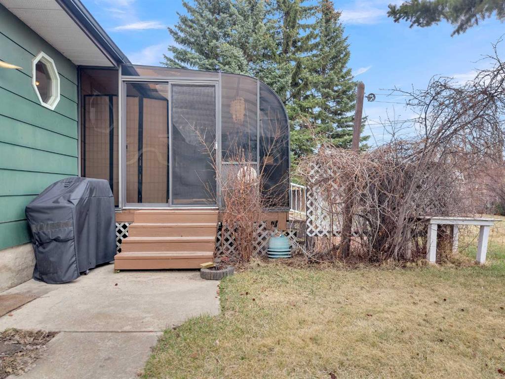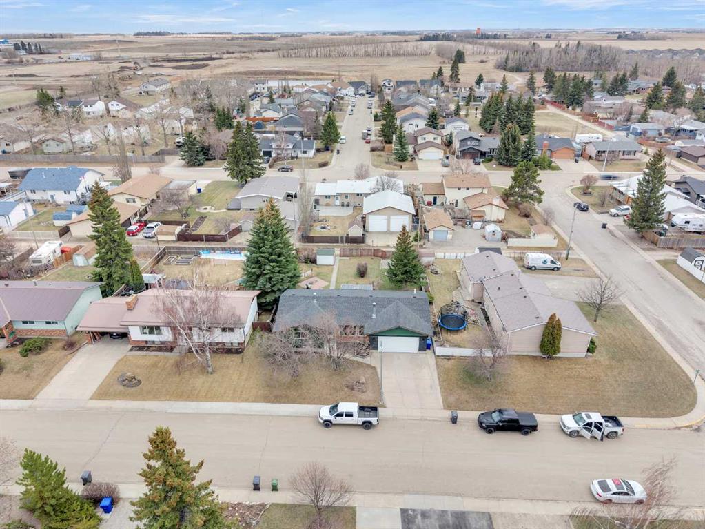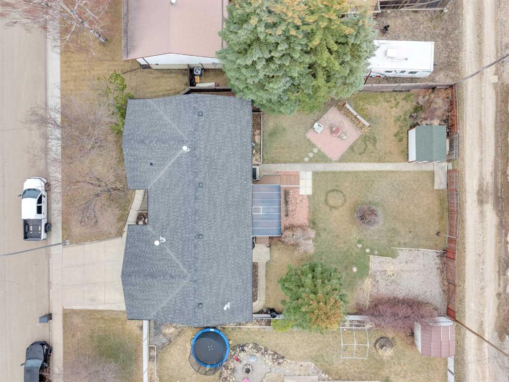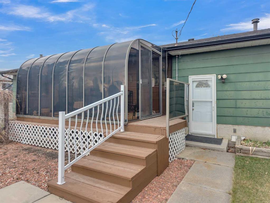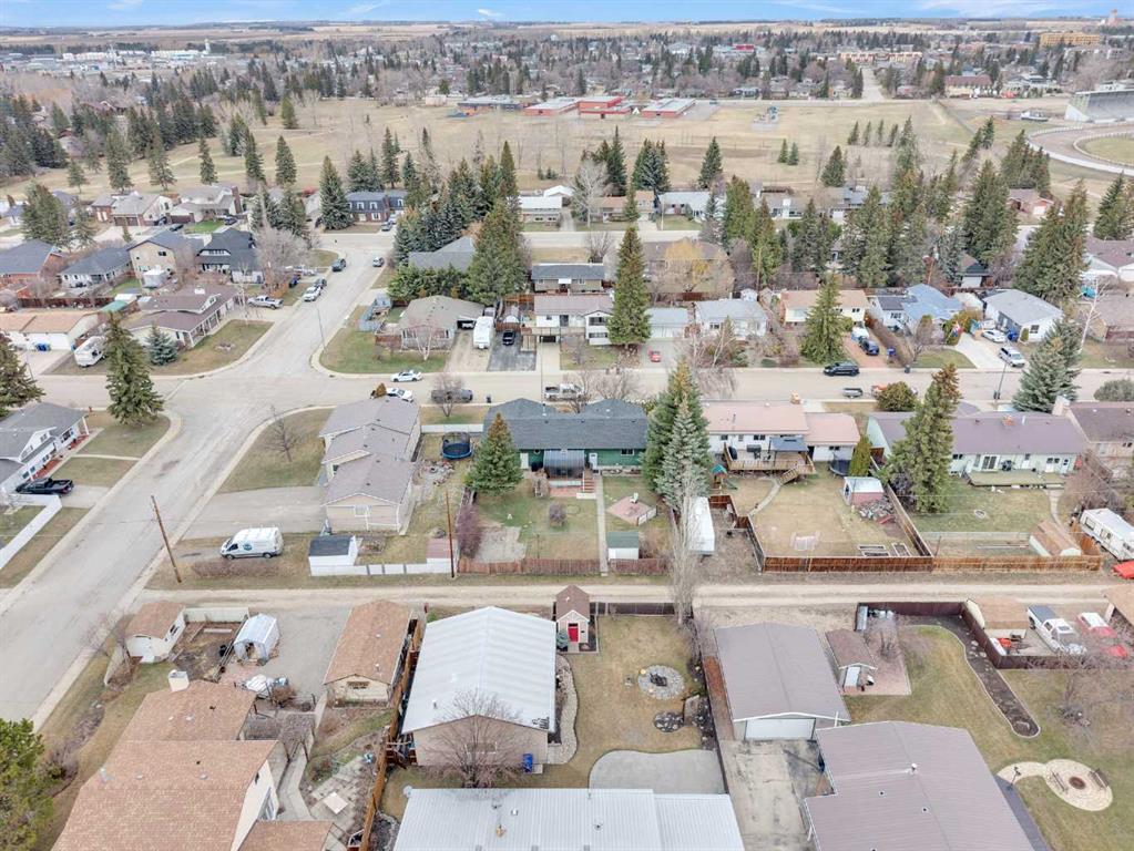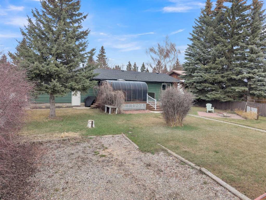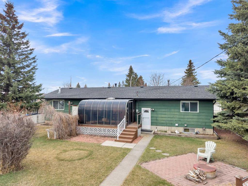 Welcome to this well-kept 5 bedroom, 2.5 bath bungalow in the heart of Olds, offering 1,358 sq ft of comfortable main-floor living and a great family-friendly layout. Built in 1977, this home features an attached heated and insulated double garage (31'5" × 22'2") with 220 power, plus gated rear access for RV parking. Inside, you will appreciate the abundance of natural light, a bright kitchen and dining area, hardwood in one bedroom, and a mix of carpet and linoleum throughout the rest of the home. A cozy, heated sunroom extends your living space, while the basement offers a wood stove with a convenient wood chute, an insulated cold room, and a laundry chute. The fenced yard includes Saskatoon and cherry trees, a fire pit, and a private patio area. Recent updates include high-impact asphalt shingles (2023), a new fridge (2023), dishwasher (2018), and garage heater and siding (2018). Additional features include a 100-amp house panel, sump pump, and north/south entry doors. Located close to Olds College, schools, shopping, parks, and the Aquatic Centre, this is a solid home in a great community.