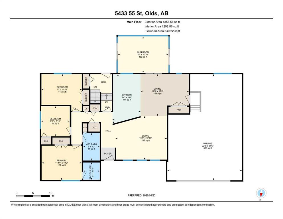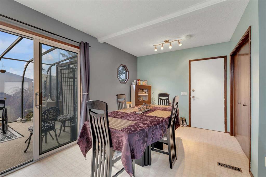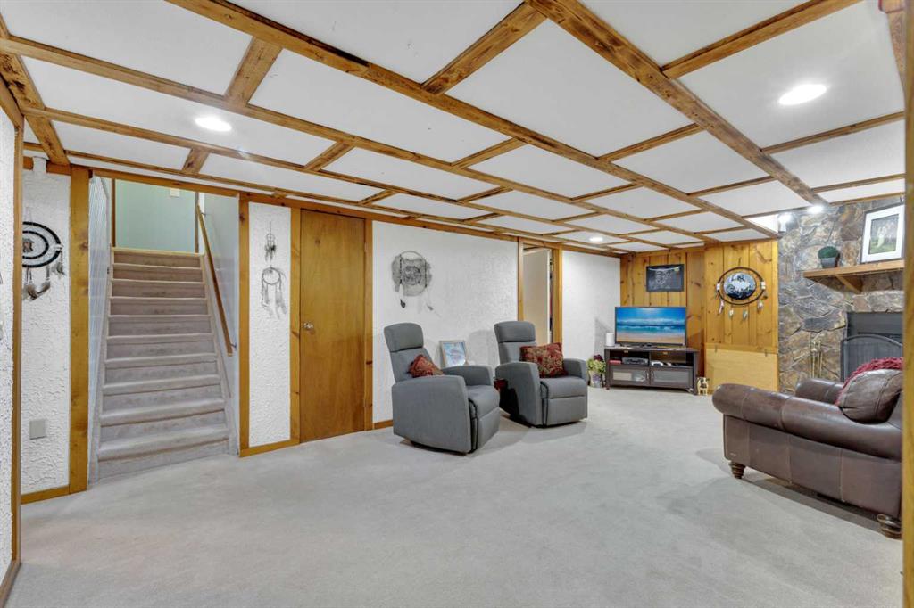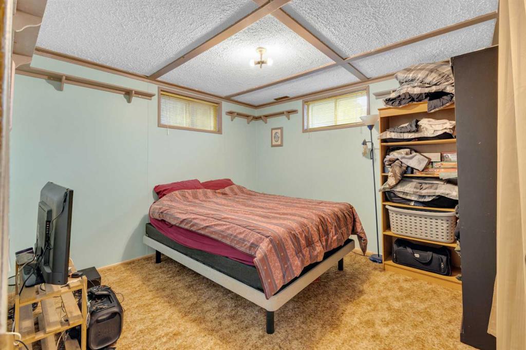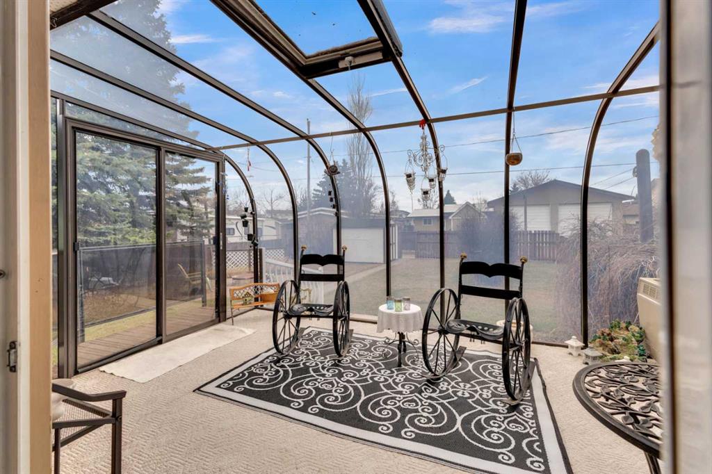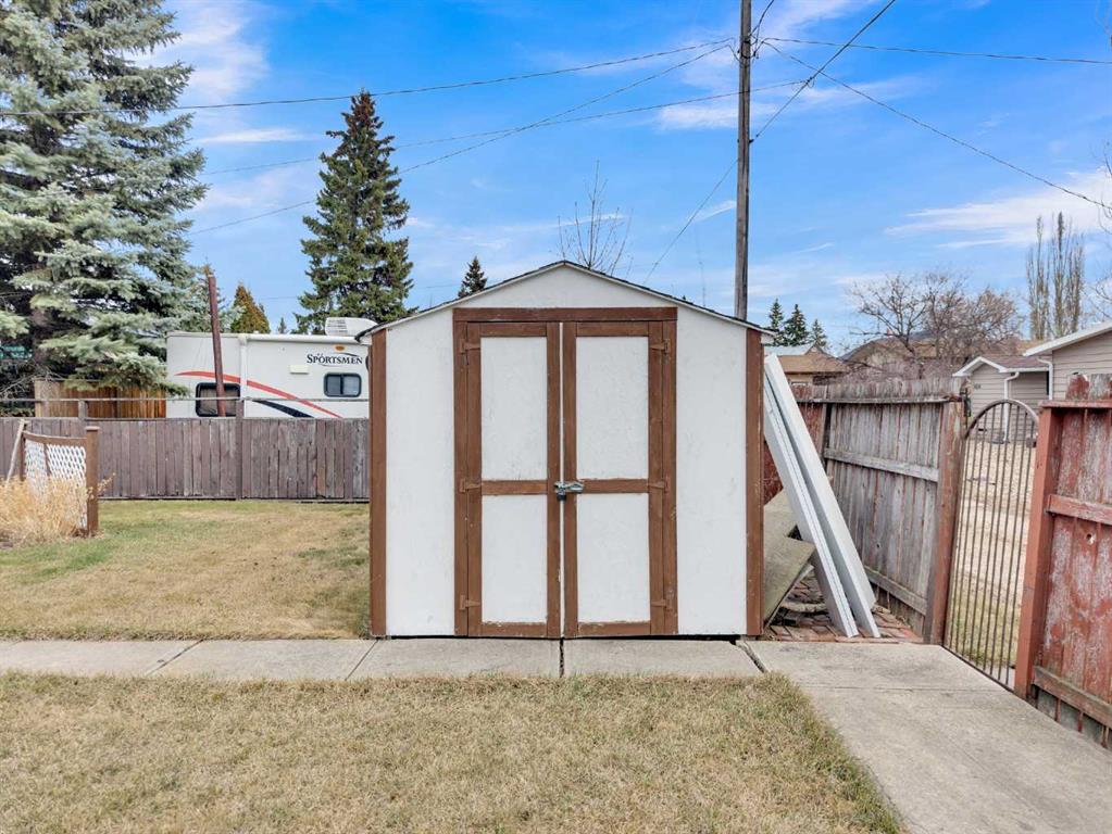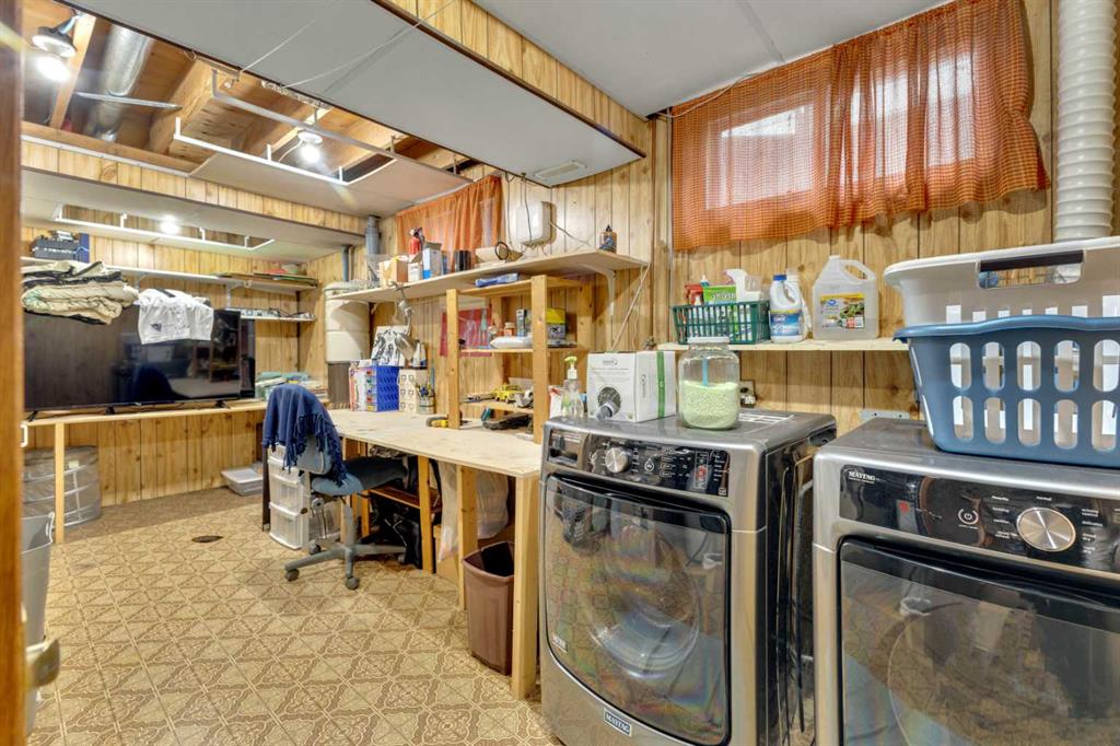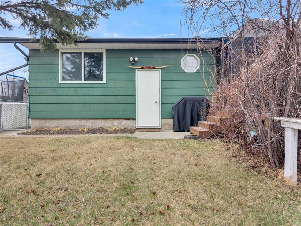 Welcome to this well-kept 5 bedroom, 2.5 bath bungalow in the heart of Olds, offering 1,358 sq ft of comfortable main-floor living and a great family-friendly layout. Built in 1977, this home features an attached heated and insulated double garage (31'5" × 22'2") with 220 power, plus gated rear access for RV parking. Inside, you will appreciate the abundance of natural light, a bright kitchen and dining area, hardwood in one bedroom, and a mix of carpet and linoleum throughout the rest of the home. A cozy, heated sunroom extends your living space, while the basement offers a wood stove with a convenient wood chute, an insulated cold room, and a laundry chute. The fenced yard includes Saskatoon and cherry trees, a fire pit, and a private patio area. Recent updates include high-impact asphalt shingles (2023), a new fridge (2023), dishwasher (2018), and garage heater and siding (2018). Additional features include a 100-amp house panel, sump pump, and north/south entry doors. Located close to Olds College, schools, shopping, parks, and the Aquatic Centre, this is a solid home in a great community.