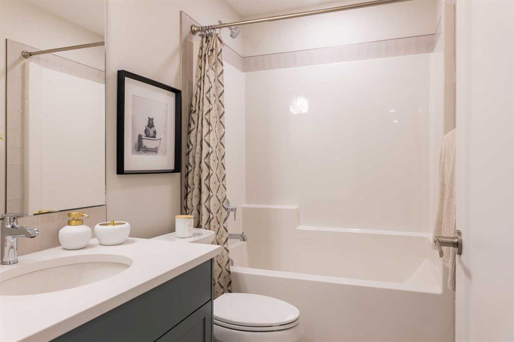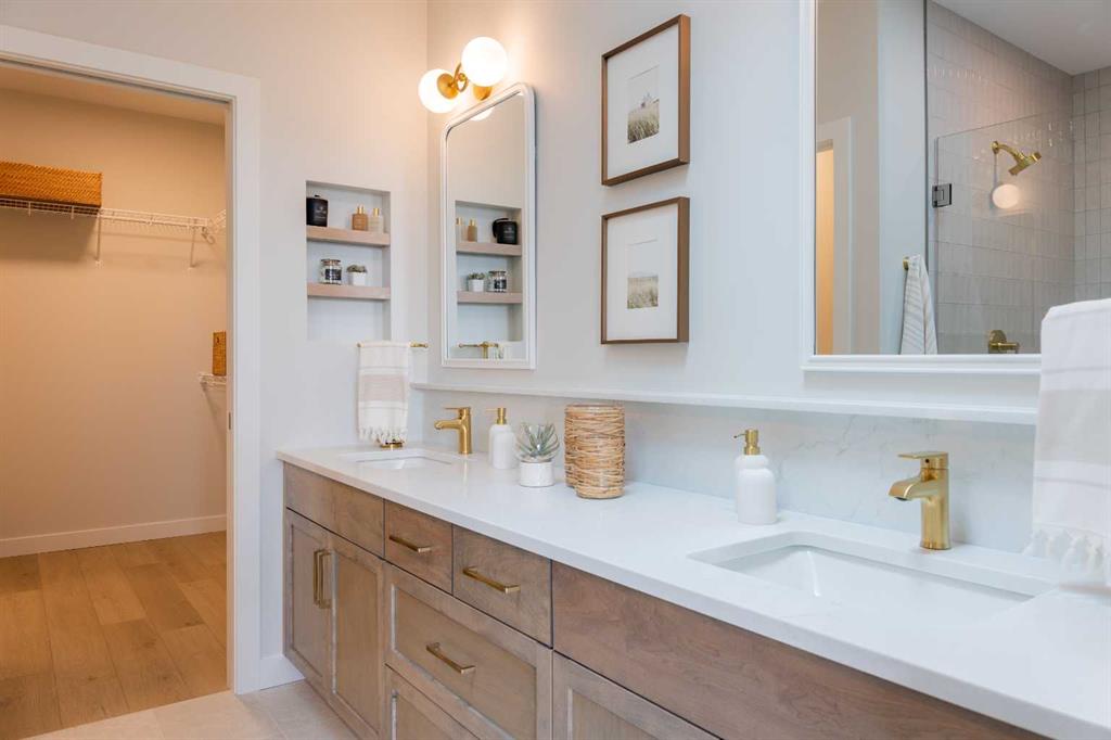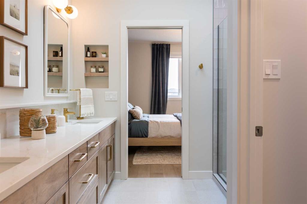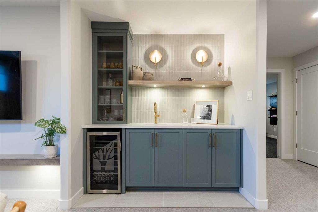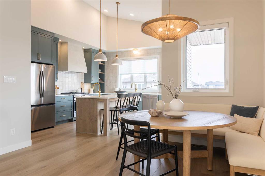 A showhome with everything you need on the main floor?! How often does that happen? Well, here it is. The Ficus by Cedar Ridge Homes is an incredible bi level floorplan, that pairs functionality with elevated showhome finishes to create a true masterpiece you need to see. Up a few stairs from your spacious foyer with built ins, you are greeted by a lovely main floor complete with a cozy living room with gas fireplace, and two floor to ceiling windows that flood this whole space with the best natural light. The kitchen is truly one of a kind with two tone cabinets, a plaster hood fan, upgraded cabinets with glass insert, open shelving, and full height ceramic tile backsplash. Not to mention the positively massive window over your kitchen sink. Doing the dishes just got so much better with this in front of you! There's an extra prep sink in the beautiful island to make this space extra functional. Your primary bedroom is conveniently located on the main floor, with a four piece ensuite connected to a spacious walk in closet, which is then connected to your main floor laundry! Zero excuses if your clothes don't get put away now! The unique floorplan continues up a few stairs to the second floor, where you will find a great size loft area with open to below feature, another four piece bathroom, as well as two bedrooms. If you have little kids, they won't be too far away from you at all! The basement is also fully developed, with a family room with wet bar with custom cabinets, one more four piece bathroom, and 3 more bedrooms. You read that right...3! 6 bedrooms total! Outside you will love that a large deck has already been built on and is just ready for you to enjoy the morning sunrise. This home is located in the highly sought after neighbourhood of Riverstone, where people rave about the schools, parks, walking paths, and close access to restaurants, groceries, a fully stocked fishing pond, and so much more. Come see all this gorgeous showhome has to offer.