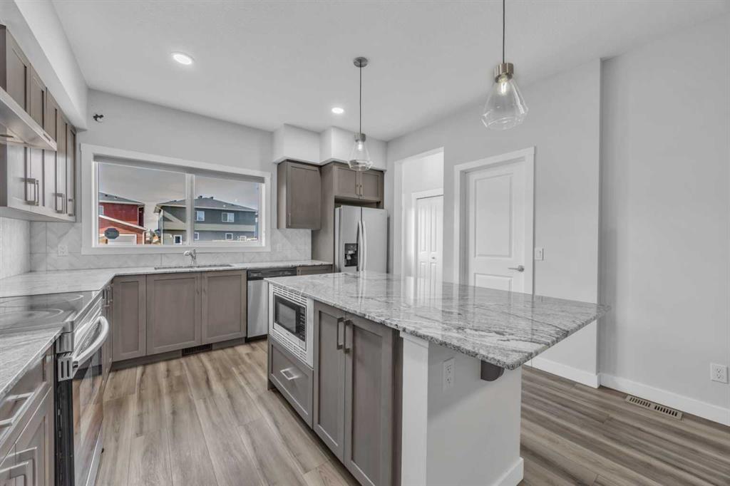 2 BEDROOM ILLEGAL SUITE, SEPARATE ENTRANCE, MAIN FLOOR BEDROOM WITH FULL BATHROOM, SEPARATE LAUNDRY. Welcome to this fantastic opportunity for home ownership in the highly sought-after community of Cornerstone, Northeast Calgary! Cornerstone is celebrated for its close proximity to schools, parks, playgrounds, shopping, groceries, and convenient access to all major highways—making it an ideal place to call home. This beautifully designed property offers over 2,533 sq. ft. of living space, featuring a main floor bedroom with a full bathroom—perfect for guests or multi-generational living—along with a 2-bedroom illegal basement suite. As you step inside, you’re greeted by a welcoming bedroom and full bath on the main floor. The chef-inspired kitchen is equipped with stainless steel appliances, built-in microwave, electric stove, and a chimney hood fan. The open-concept layout flows seamlessly into the dining and living areas, filled with natural sunlight from the west-facing backyard, creating a bright and inviting atmosphere. The spacious living room is perfect for hosting large gatherings and family events. Upstairs, you’ll find a primary bedroom with a luxurious ensuite and a large walk-in closet. Two additional generously sized bedrooms, a full common bathroom, a convenient laundry room, and a spacious bonus area complete the upper floor. The illegal 2-bedroom basement suite boasts 9-ft ceilings, a separate entrance, a full kitchen, its own laundry, a large living area, and a full bathroom—an excellent option for extended family. This home perfectly balances functionality, style, and location, offering modern comforts with timeless charm. Situated in the vibrant community of Cornerstone, this home offers unmatched convenience—just steps away from a new shopping centre, and close to schools, parks, plazas, and dining options. Don’t miss out on this modern, functional, and fully upgraded property—Some of the pictures are virtually staged. Schedule your private showing today!