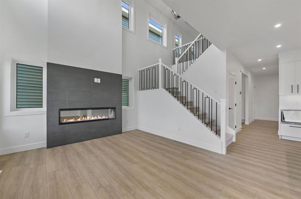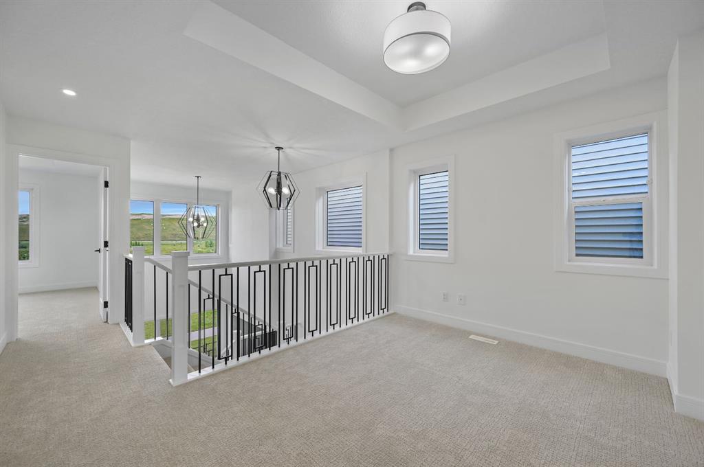 Discover contemporary luxury in this exceptional 3-Bedroom, plus main floor Den, 2.5-Bathroom TRUMAN-built home, perfectly situated in the sought-after community of Walden. Offering the ideal balance of style, comfort, and convenience, this residence is just moments from shopping, scenic pathways, and playgrounds—perfect for family living. Plus, the home backs onto a serene greenspace, offering added privacy and beautiful views right from your backyard. Step inside to find a bright, open-concept design that seamlessly connects the living spaces. The Chef’s Kitchen is a standout, boasting full-height cabinetry with soft-close doors and drawers, sleek quartz countertops, and premium stainless steel appliances. The Great Room is an inviting space with its soaring open-to-above design, and a fireplace. A main-floor Den offers flexibility for a home office or creative space, while a 2-piece Bathroom and a well-designed Mudroom add to the home’s functionality. Upstairs, the Primary Bedroom is a private retreat, featuring an elegant Tray ceiling, a luxurious 5-piece Ensuite, and a spacious walk-in closet. The upper level also includes a versatile Bonus Room, two generously sized Bedrooms, a stylish 4-piece Bathroom, and a convenient Laundry area. The unfinished Walk Out Basement offers endless possibilities for customization. With its peaceful location backing onto greenspace, this home provides enhanced privacy, making it ideal for relaxing or entertaining in a tranquil outdoor setting. Don’t miss your opportunity to experience the elevated living of this newly constructed TRUMAN home. *Photo gallery of similar model, finishings may vary*