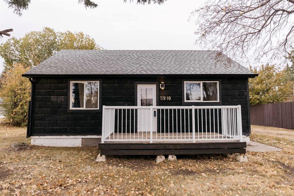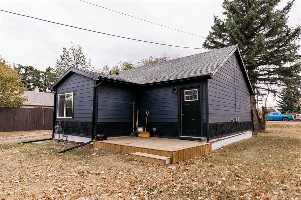 Don't miss this Stettler sweetheart! A fully renovated, single-level dollhouse featuring gorgeous crisp white kitchen cabinets with brass hardware. New vinyl plank floors; new carpeting; quartz look countertops. Two bedrooms; roomy primary with space to add a large closet! Large living room with access to the back yard which features a new ground level sundeck for evening barbecues. Also a stunning updated bathroom with a large soaker tub. The curb appeal is fantastic with new Hardie Board siding and stone-look exterior. Enjoy incredible simplicity: one utility bill! This home is all-electric with a new hot water tank and new baseboard heating. They have even upgraded the basement with sealant, new vapor barrier, insulation and dehumidifier for a nice dry storage area. Sits on a huge 11,250 sq. ft. lot with a large shed and plenty of room for the largest garage. Nothing to do but move in! This home is centrally located. Walking distance to restaurants, shops, and parks. Its a great home, isn't it! Shouldn't it be yours?
