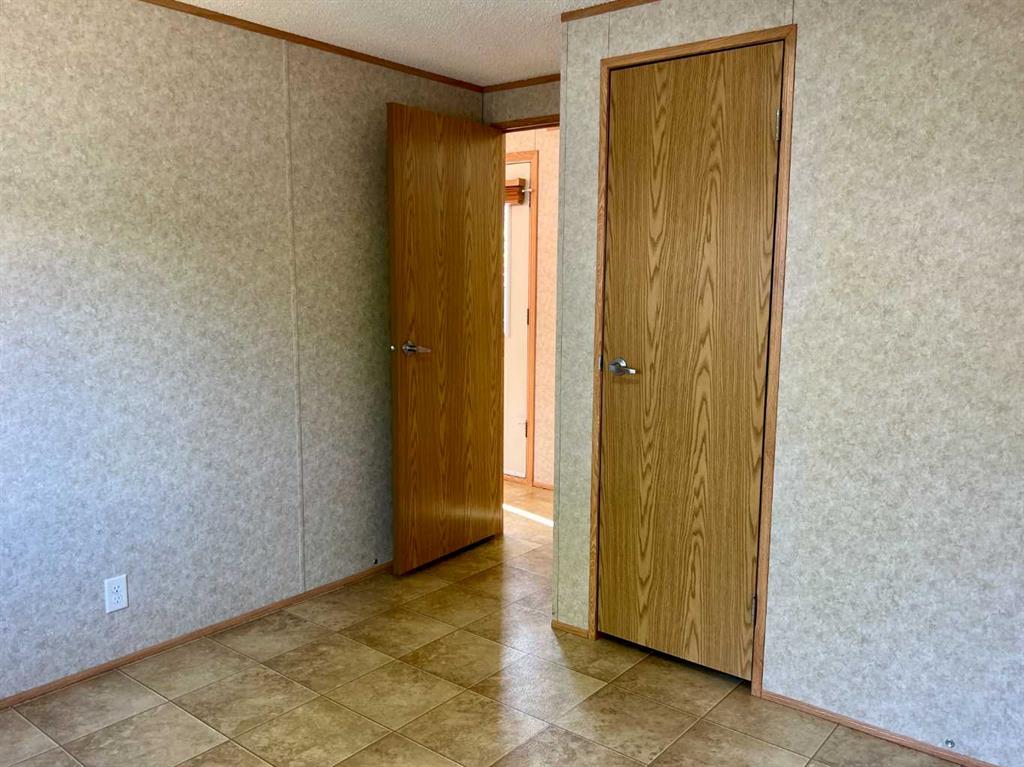 This meticulously cared for mobile home offers 3 bedrooms and 2 bathrooms in a peaceful part of town, just steps from the creek. This home is filled with character and thoughtful updates, including a newly renovated 3-piece bathroom. The private backyard is a true retreat, featuring two storage sheds, plus a larger shed/workshop for hobbies or extra space. A paved driveway, a lovely deck, and a concrete firepit pad create the perfect setting for relaxing evenings or gathering with friends and family. With its warm and inviting layout, outdoor spaces designed for enjoyment, and quiet location close to nature, this home is ready for you to move in and make it your own