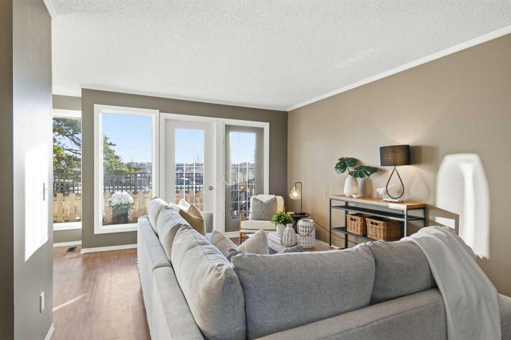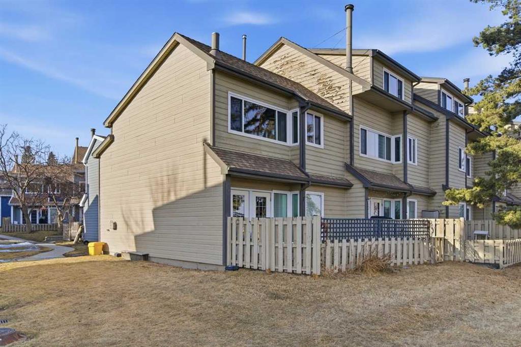 Stop renting and start owning! This affordable townhome offers a smart entry into homeownership or a solid rental investment. Welcome to Nose Creek Gardens, a pet-friendly complex, where this desirable interior end-unit 2-bedroom home offers strong attraction for buyers. Advantages of Unit 6’s location include fewer shared walls for reduced noise, extra windows for elevated natural light, and no parking-lot exposure. Move-in ready, the main level showcases a bright, open-concept floor plan with laminate hardwood flooring and fresh, neutral paint tones throughout. The stylish kitchen with timeless shaker-style cabinets, modern black appliances, and breakfast bar flows seamlessly into the dining and living areas. From the living room, patio doors open to a private, fenced-in backyard with deck and grassy space, extending daily living and great for entertaining. Upstairs, you’ll find a dedicated storage room and linen closet, plus 2 generously sized bedrooms and a 4-piece bath with a reglazed tub (Dec 2025). There is no shortage of storage with the front hallway closet, main-level crawl space, and dedicated laundry room that awaits your washer and dryer. Feel peace of mind with the home’s updated triple-pane windows (2021), high-efficiency furnace (2017), and recent new hot water tank (Dec 2025). Assigned parking stall with plug-in and ample street parking, plus the building benefits from Hardie Board siding and new fencing planned for 2028, which offers a compelling opportunity to buy in at today’s price ahead of these planned improvements for enhanced long-term value once completed. In the community of Greenview, enjoy quick access to Deerfoot Trail, McKnight Blvd, downtown, airport, with public transit steps from your back door. The Nose Creek Pathway systems make it easy to enjoy nearby parks and trails, in addition to the complex’s mature trees and landscaped pathways. Book your showing today! At this price point, this home delivers comfort and lifestyle appeal, suited to first-time buyers, downsizers, or investors.