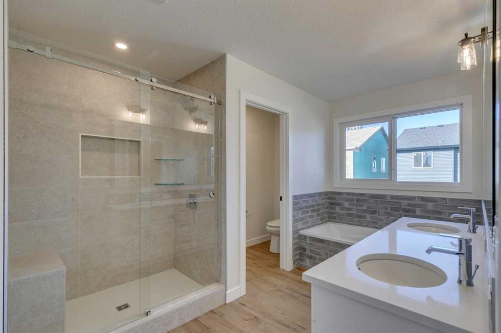 Welcome to the Damon model – where style meets functionality! Built by a trusted builder, this home showcases on-trend, designer-curated interior selections tailored for a home that feels personalized to you. This energy-efficient home is Built Green certified and includes triple-pane windows, a high-efficiency furnace, and a solar chase for a solar-ready setup. With blower door testing, plus an electric car charger rough-in, it’s designed for sustainable, future-forward living. Featuring a full range of smart home technology, this home includes a programmable thermostat, ring camera doorbell, smart front door lock, smart and motion-activated switches—all seamlessly controlled via an Amazon Alexa touchscreen hub. This thoughtfully designed home features a separate entrance, perfect for future development. A main floor flex room with elegant double doors adds versatility, while the executive kitchen boasts built-in stainless steel appliances, gas cooktop, fridge with water & ice, and a spacious walk-in pantry. Relax in the great room with gas fireplace, step out onto the rear deck, or enjoy your morning coffee on the upper floor balcony. Upstairs offers a vaulted ceiling in the bonus room, a 5-piece ensuite with tiled walk-in shower, soaker tub, and dual sinks in the main bath. Bright and airy with additional windows throughout! Photos are representative.