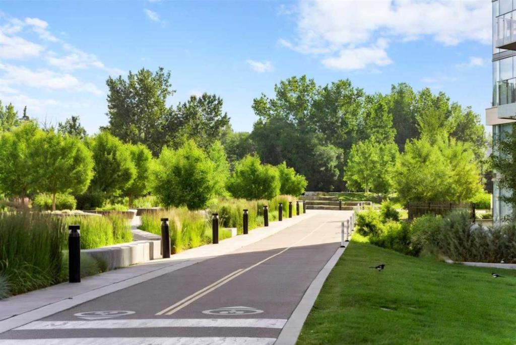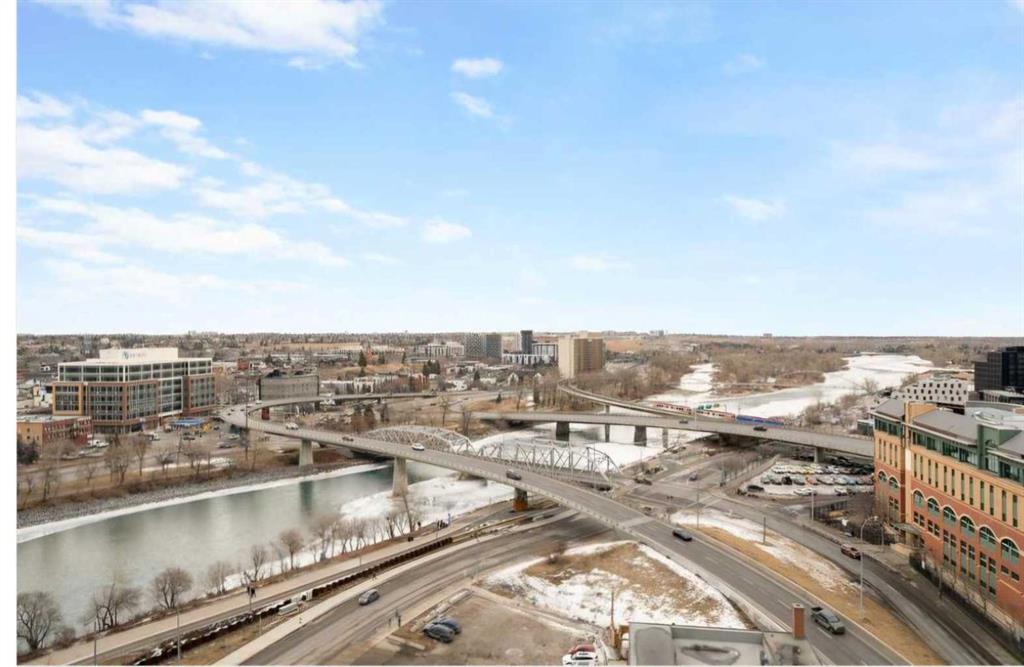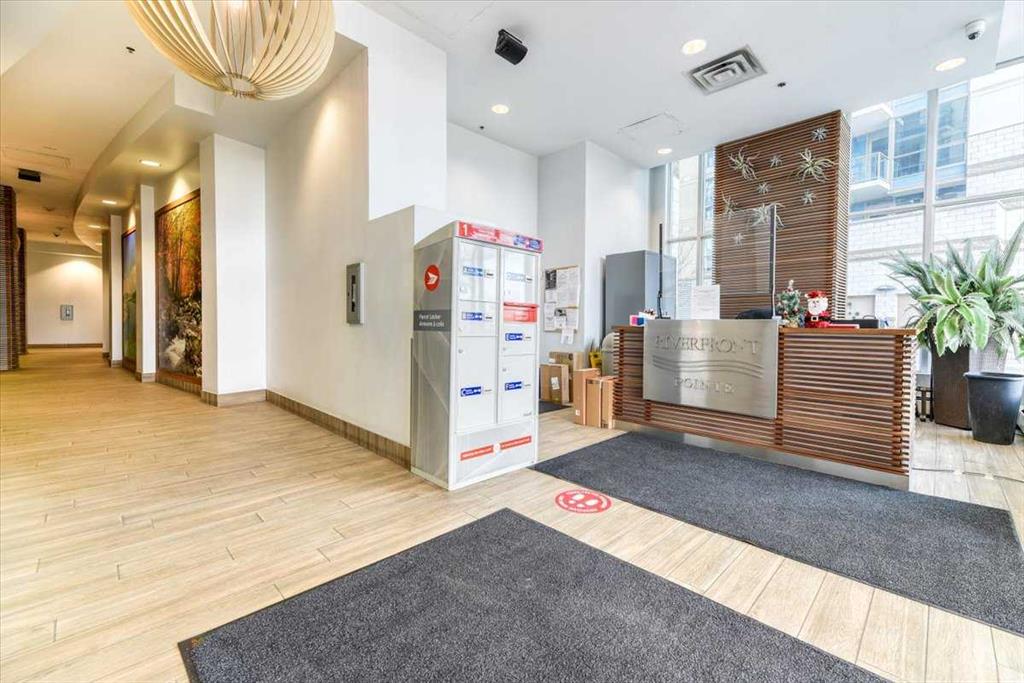 Welcome to Riverfront Pointe, where this splendid 2-Bedroom, 2-Bathroom, 1 heated underground parking stall Condo awaits. Enjoy Panoramic views of the river and lush river valley from every window, including the Balcony. The open-concept kitchen, dining and living area is ideal for entertaining, enhanced by 9-foot ceilings and abundance of natural light. Convenience is key with in-suite laundry, and fully equipped fitness room. Enjoy the modern kitchen, granite countertop and SS appliances. Stroll to trendy restaurants, live music venues, the world-class Library, and scenic Bow River Pathways. Hurry and schedule your showing, and make this your Downtown Oasis.