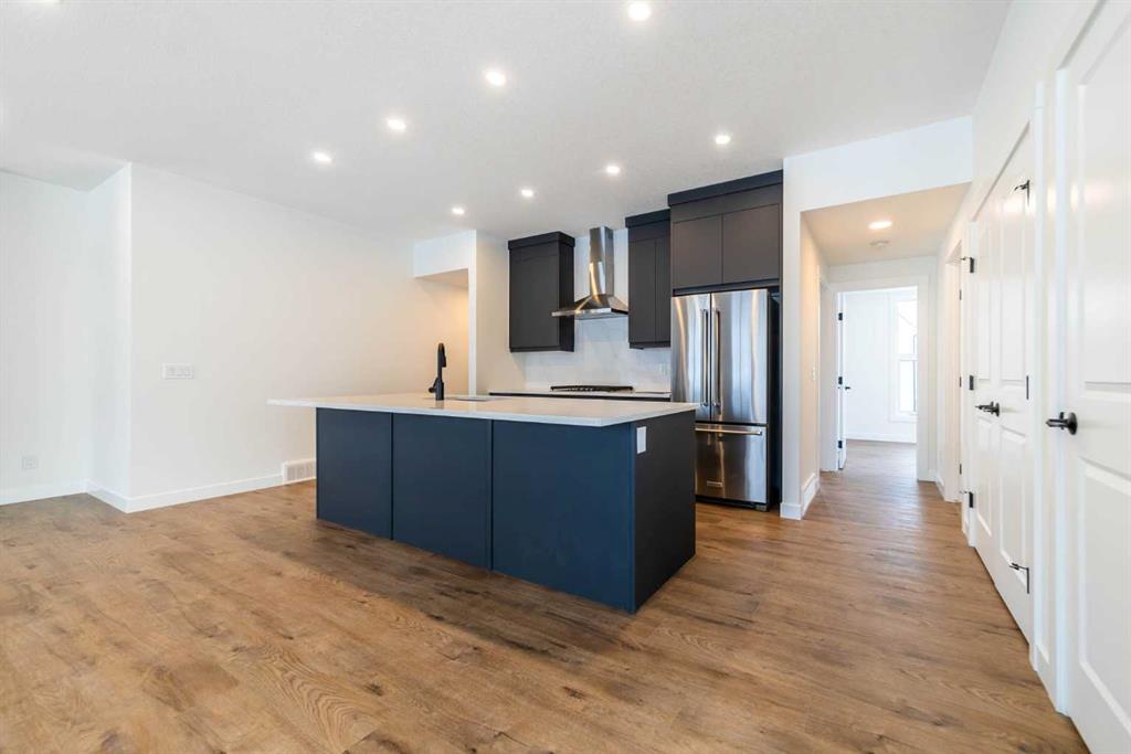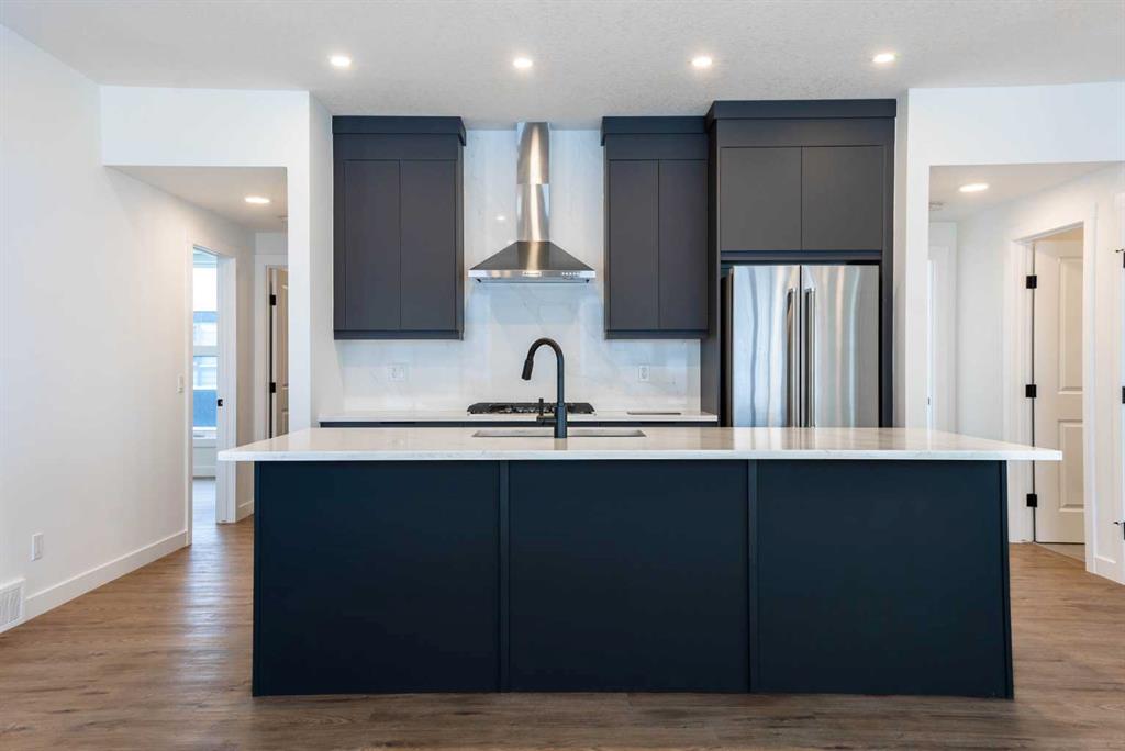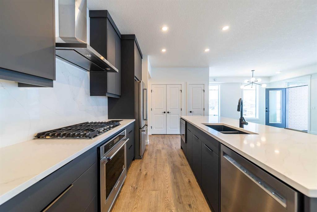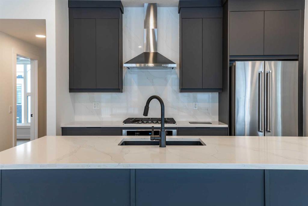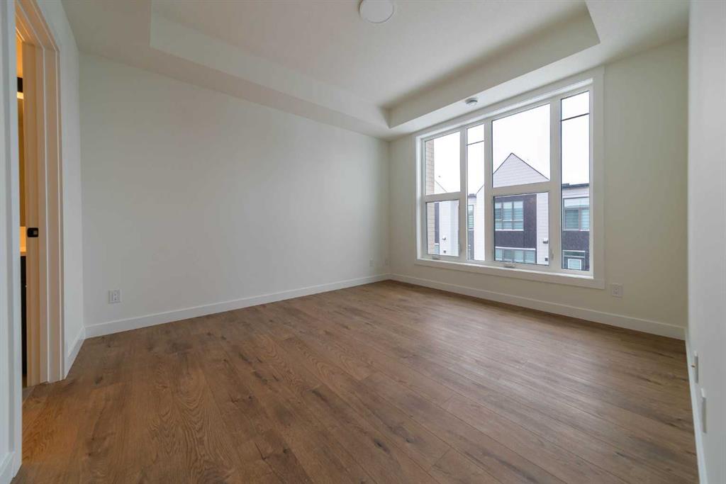 The Hyde at Crown Park is the perfect townhouse for those wanting single-level living without compromise. Featuring 3 bedrooms, 2 bathrooms, and nearly 1,400 ft2 of living space on one level with a private double attached and endless storage space, this home is perfect for those looking to downsize without compromising. Located in the heart of Crown Park overlooking a central park and just minutes from downtown Calgary, this brand new end-unit townhome perfectly combines maintenance-free living within a central urban setting. The beautifully designed main living area has the perfect open-concept design, making it ideal for entertaining and hosting. The kitchen anchors the main living space and opens perfectly to the living and dining areas with a wall of southwest-facing windows flooding the space with natural light. The timeless kitchen is complete with shaker cabinets, quartz countertops, and a suite of built-in appliances including a gas cooktop. The expansive living area has a central fireplace and ample seating space for six+ people, making entertaining a breeze. The large dining area can easily accommodate a table with seating for eight people and includes additional windows for added natural light. The primary suite is located at one end of the property, with laundry providing added privacy between the owner's suite and secondary bedrooms. A luxurious 4 pc ensuite with dual sinks and a walk-in shower as well as a large walk-in closet complete the primary suite. Two additional bedrooms provide added flexibility, with space for a guest bedroom + home office space or media room, and have their own full bathroom. The main living area is complete with a large laundry room with additional cabinets for storage and a countertop for added convenience. A ~26'x8' balcony provides the perfect outdoor living space - complete with a gas line, hose bib, and overlooking the park with optimal southwest exposure ensuring you're maximizing your sun and natural light all year long. The lower level of the property provides access to the oversized private double attached garage and two expansive storage spaces provide the space you've been looking for! Located at Calgary's newest inner-city development, this brand new home provides a lock-and-leave lifestyle without compromise and includes full builder warranty + Alberta New Home Warranty. These rare designs don't come available often - this is your opportunity to get the bungalow-style home you were looking for that offers single-level living with a private garage and low fees that provide you with a maintenance-free lifestyle. *Note photos of a previous listing and are not an exact representation of the property for sale.