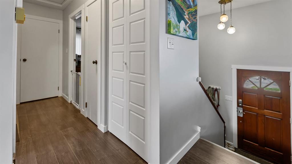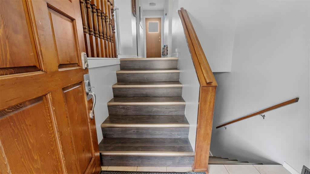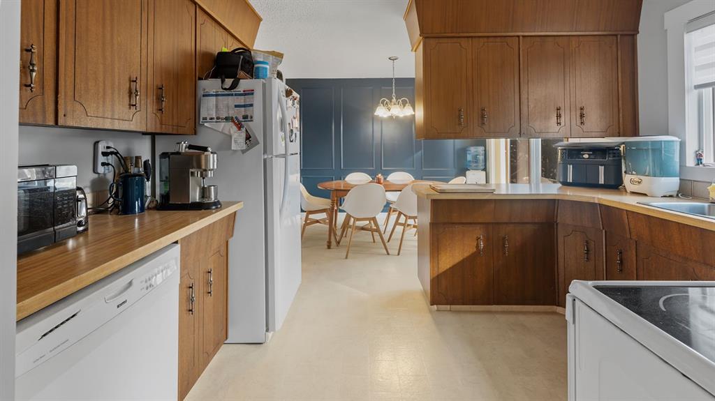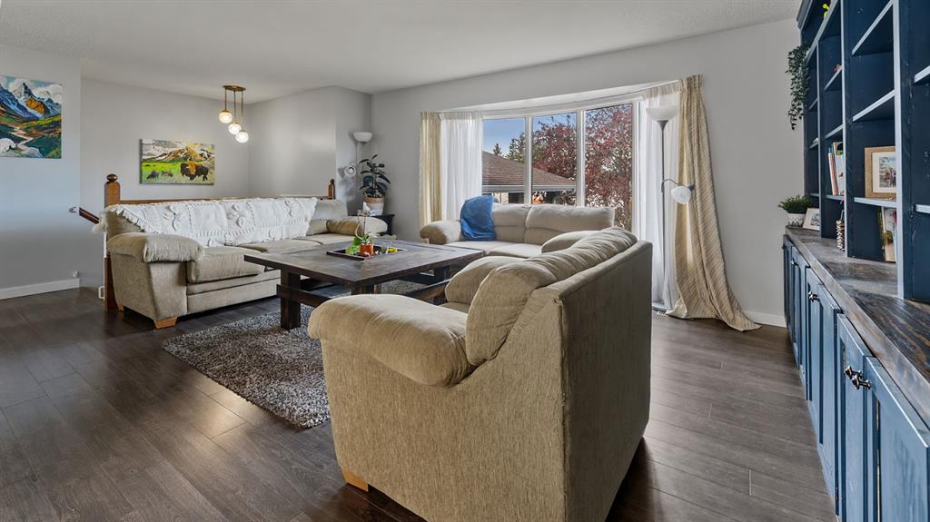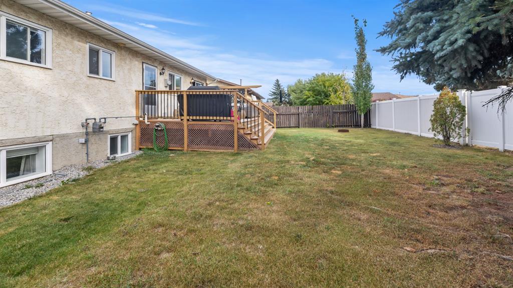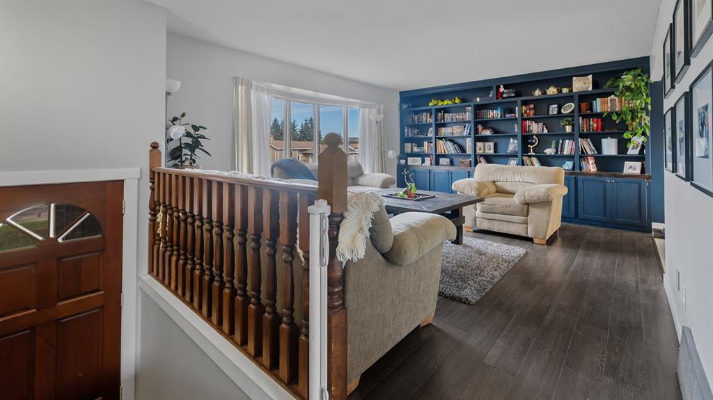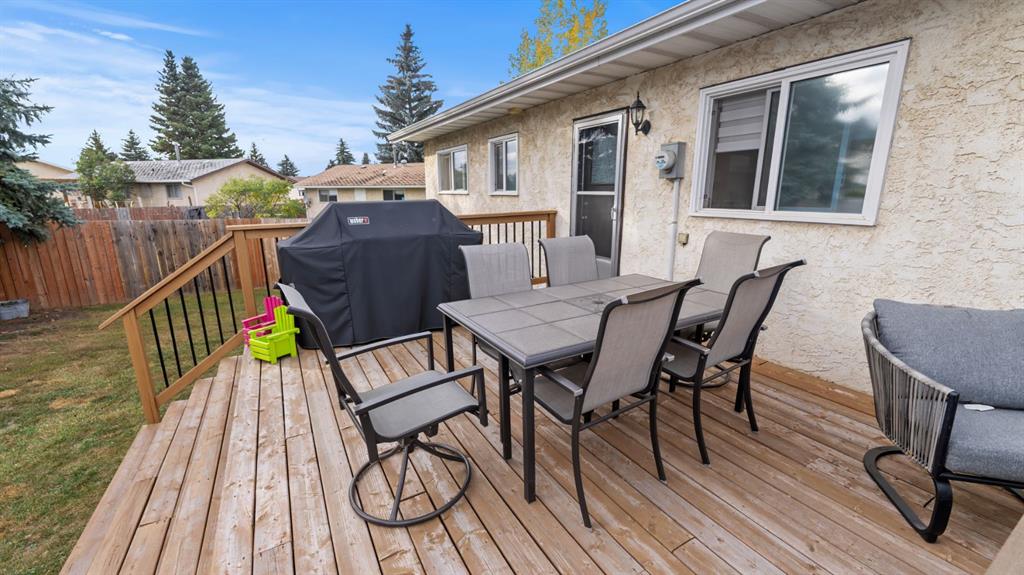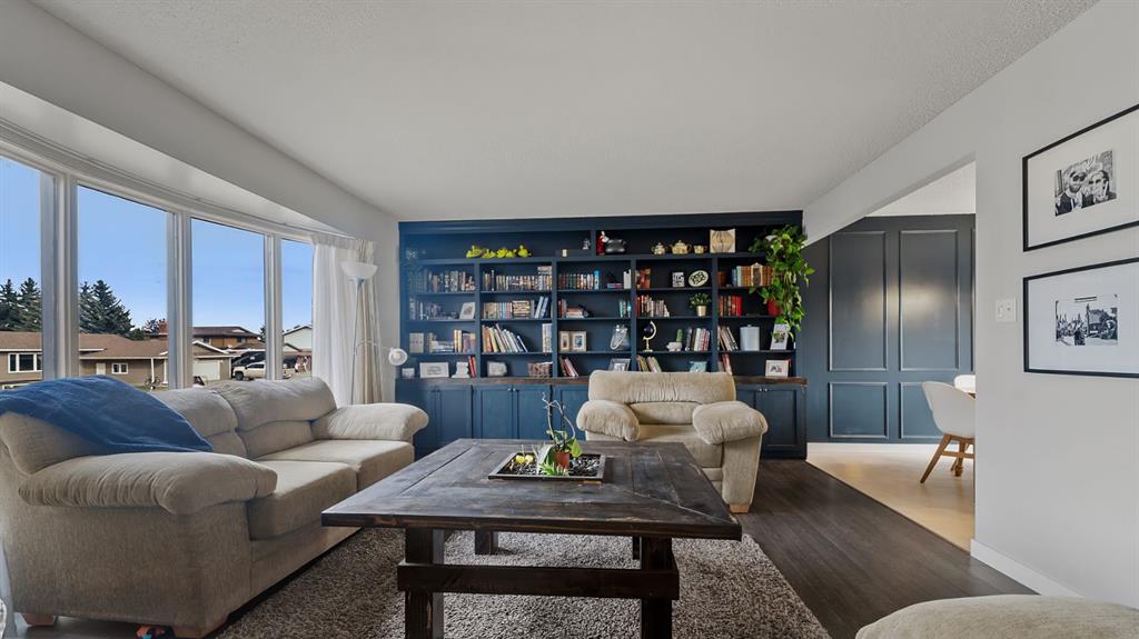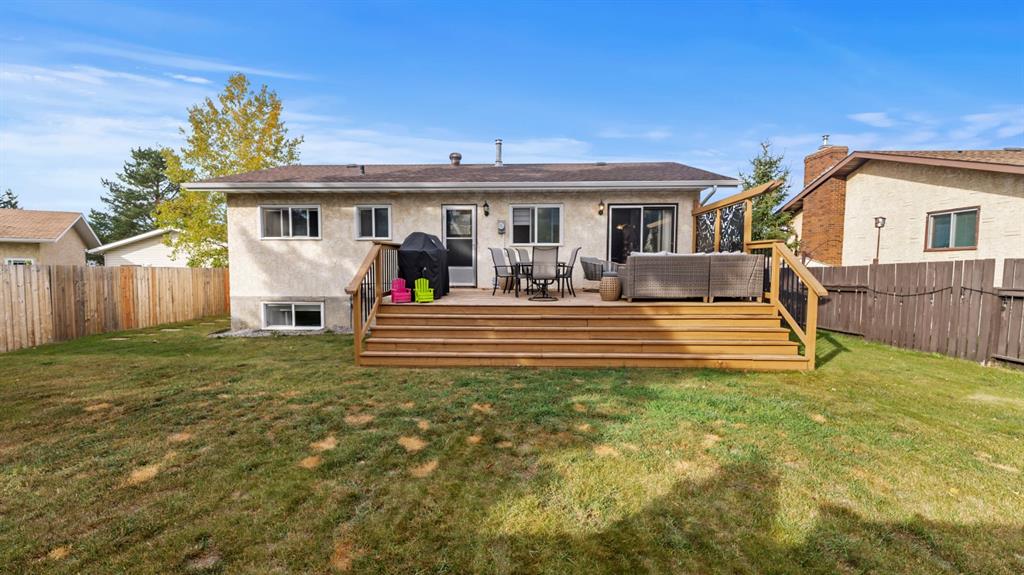 This beautifully maintained bi-level home is ideal for first-time buyers or a young family. Just two blocks from Jack Stuart School and close to several parks, the location couldn’t be more convenient. Upstairs, you'll find a bright and spacious living area featuring a bay window and an impressive floor-to-ceiling built-in library. The open dining area is filled with natural light, a stunning feature wall, and the functional kitchen offers a great view of the backyard, perfect for keeping an eye on kids or pets. Step right from the kitchen onto a large deck that leads to a fully fenced backyard, ideal for playtime, pets, or entertaining. The main floor also includes two bedrooms and an updated 5-piece bathroom. The primary bedroom features his-and-hers closets for plenty of storage. The fully finished lower level offers two additional bedrooms, a 3-piece bathroom, and a generous rec room complete with a wet bar, great for family gatherings or relaxing nights in. Additional features include a double attached garage, a garden shed, and a fantastic location in a family-friendly neighborhood. Don't miss this clean, well-cared-for home, ready for you to move in and make it your own!