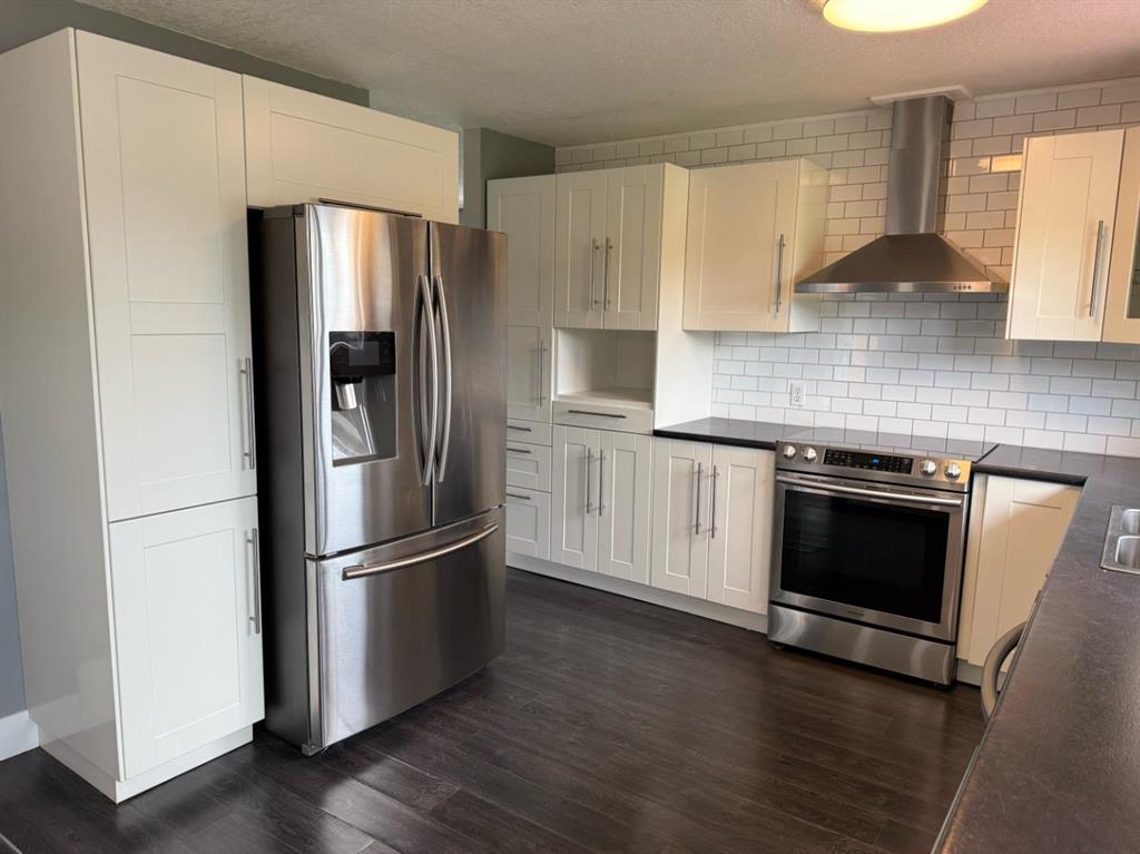 Step inside this stunning 1986-built, 1 ½ storey home and be welcomed by its soaring ceilings, grand staircase, and abundant natural light. With impressive square footage and a massive lot, this home offers both space and style for your family to thrive. The main floor features a modern, functional kitchen complete with stainless steel appliances, an island, and plenty of cabinetry, seamlessly flowing into an ample dining area perfect for entertaining. The large living room is anchored by a striking stone-accented wood-burning fireplace, creating a cozy yet elegant gathering space. A sunken family room with a second stone fireplace, giving on to the garden doors leading tho the back deck, provides even more room to relax or host guests. The welcoming large entryway, main floor laundry, and a convenient 2-piece bathroom add to the home’s functionality. Upstairs, you’ll find a main 4-piece bathroom and two generous bedrooms, along with a private primary suite boasting its own 3-piece ensuite and walk-in closet. The finished basement offers excellent versatility — a fourth bedroom, a den/home office, an expansive family room, an additional 3-piece bath, plus a utility and storage area to keep everything organized. Outside, enjoy the huge backyard with direct access to Festival Park, the dog park, and serene green spaces — a rare and highly desirable feature. The 22’ x 22’ attached garage with an 8’ x 16’ overhead door adds both convenience and value. Recent upgrades give peace of mind and efficiency: Dishwasher (Sept. 2025), Two new furnaces (Sept. 2025), Shingles (Approx. 2017), Upgraded windows (Approx. 2019), Smoke & CO2 detectors (Sept. 2025). This home blends classic charm with thoughtful updates, offering incredible space, comfort, and a sought-after location backing onto parks and trails. Don’t miss the opportunity to own this beautifully maintained, move-in ready home!