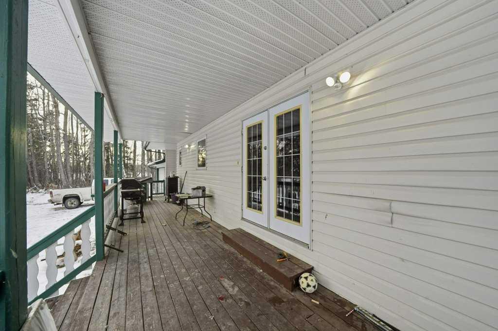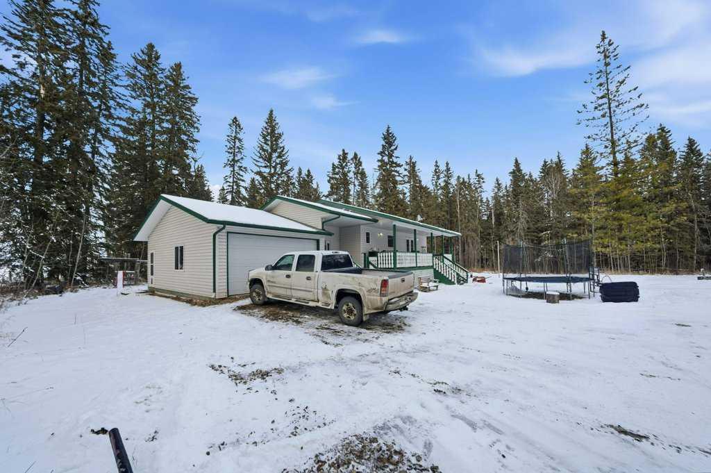 Welcome to your private retreat where nature, space, and comfort meet. This beautiful 8+ acre property is located just 8 minutes from Rocky Mountain House and offers the perfect blend of country living with town convenience. Enjoy sunrise views from the southeast-facing covered front veranda. The property features walking trails, quadding trails, and cross-country ski paths throughout, making it an ideal setting for outdoor enthusiasts and families. The land offers excellent potential for a home-based business, secondary business space, or recreational use, including space for children to explore and enjoy nature. The property includes 8 acres of treed and open land, a single attached garage, and a double detached garage. The covered front veranda and porch provide a peaceful outdoor living space with scenic views. Inside, the home offers a bright open-concept main floor. The spacious primary bedroom includes a full ensuite and dual closets. A 4-piece main bathroom with tub and shower combination serves the main floor. The basement is open and functional offering excellent space for a family room, office, gym, or additional living area. This property offers the freedom of acreage living with the comforts of home, all within 8 minutes of town.
