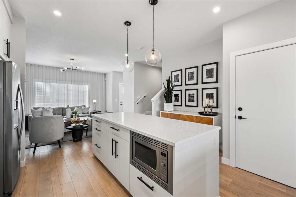 Discover modern elegance and smart design in this beautifully upgraded 3-bedroom, 2.5-bath home located in Calgary’s vibrant and fast-growing Southeast community of Rangeview. Built by TRUMAN and packed with upscale features, this move-in ready gem is just minutes from parks, shopping, Calgary South Health Campus, the YMCA, and offers quick access to Stoney Trail. Step inside to soaring 9' ceilings and stylish luxury vinyl plank flooring that flow through the open-concept main floor. The chef-inspired kitchen is a true showstopper—featuring full-height cabinetry, soft-close doors and drawers, gleaming quartz countertops, stainless steel appliances, a spacious pantry, and a sleek eating bar that seamlessly connects to the dining and living areas—ideal for entertaining. A chic powder room, mudroom, and a convenient side entrance round out the main level. Upstairs, unwind in the spacious primary retreat with tray ceiling detail, a spa-like 4-piece ensuite, and a generous walk-in closet. A central bonus room adds flexible living space, while two additional bedrooms, a full bath, and an upstairs laundry room offer everyday convenience. The 1-bedroom legal basement suite—with a private side entrance—makes the perfect mortgage helper, offering unbeatable versatility for rental income or multi-generational living. Stylish. Functional. Income-generating. This is the lifestyle upgrade you’ve been waiting for. *Photos are from a similar home.*