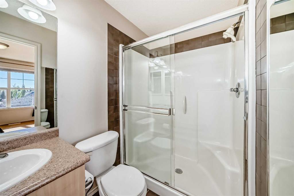 This sunny, south-facing townhouse has a great setup and feels more like a single-family home than part of a big complex. Out front, you’ve got a private, fenced patio with poured concrete and just enough tree coverage for shade and privacy. It’s the perfect spot to soak up some sun or fire up the barbecue. Inside, there’s a tiled mudroom right off the double attached garage, which easily fits two vehicles and has epoxy floors. The main level is open and bright with hardwood floors, a big kitchen island, gas stove, and plenty of windows that bring in tons of natural light. There’s also a handy two-piece bathroom on this level. Upstairs, both bedrooms have their own walk-in closets and ensuite bathrooms, which is a great setup for roommates or guests. There’s also a small den at the top of the stairs that makes a nice home office or reading spot. The south-facing deck looks onto single-family homes and even has a bit of a mountain view. You’ve got a gas line for your barbecue and central air conditioning to keep things cool in the summer. The complex is well-run, with recent roof replacements and good management. You’ll love living in Tuscany—close to the mountains, great schools, shopping, and easy access to the ring road.