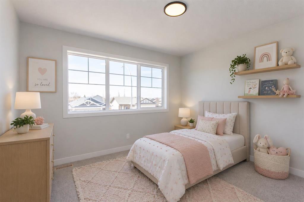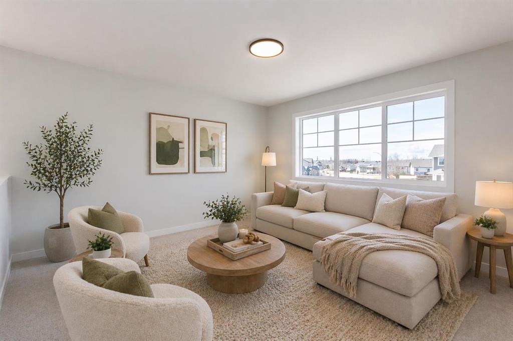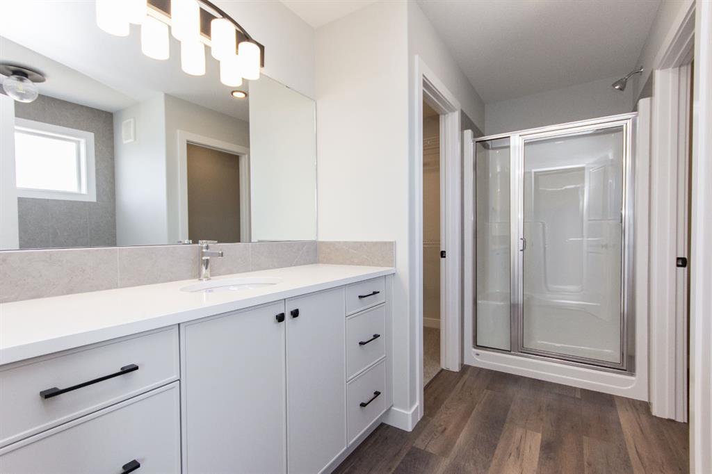 Only steps from a huge park and playground reserve, and within walking distance to the high school, this brand new Laebon built home in beautiful Meadowlark Estates is available for immediate possession! Designed with family in mind, this spacious 1896 sq ft floor plan offers a wide open living space with vinyl plank flooring, large windows, and modern finishes throughout. A nicely appointed kitchen offers raised cabinetry, stainless steel appliances, quartz countertops, a large island with an eating bar, and a walk in pantry. The living area is bright and spacious, and the adjacent dining area offers access to the back deck through large sliding patio doors. Upstairs you'll find a spacious bonus room, two nicely sized kids rooms, a shared 4 pce bathroom, and conveniently located laundry. The large primary suite offers a 4 pce ensuite with a large soaker tub, walk in shower, private water closet, and a spacious walk in closet. The attached garage is insulated, drywalled, and taped and has a floor sump to keep your floor dry in the winter. If you need more space, the builder can complete the basement development for you, and allowances can also be provided for a washer and dryer to make this a completely move in ready package. A poured concrete front driveway, front sod, and rear topsoil to grade will be completed by the builder as weather permits. 1 year builder warranty and 10 year Alberta New Home Warranty are included. Taxes have yet to be assessed.