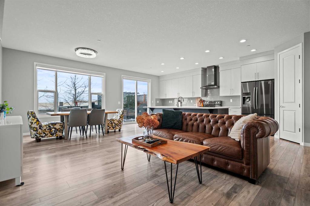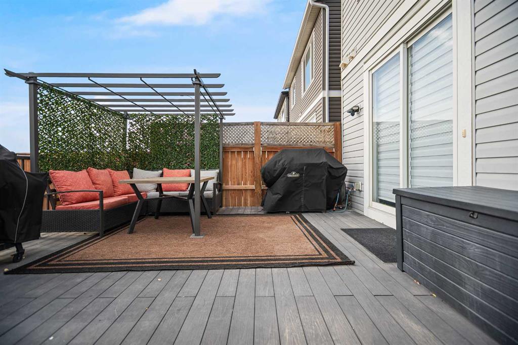 Welcome to this beautifully maintained and fully developed home in the highly sought-after community of Livingston. Offering 3 bedrooms, 3.5 bathrooms, a double attached garage, a private backyard with mature trees, and over 2,600 sq. ft. of thoughtfully designed living space, this home combines comfort, functionality, and style. Recent upgrades include brand-new siding and shingles, fresh interior paint, upgraded lighting, central air conditioning, and a finished garage. From the moment you arrive, the charming curb appeal sets the stage. Inside, a bright and spacious foyer opens to a sun-filled main floor featuring an open-concept layout with gleaming flooring, a generous dining area, and an expansive living room centered around a stylish, cozy fireplace—ideal for everyday living and entertaining. The chef-inspired kitchen is a true highlight, complete with premium stainless steel appliances, quartz countertops, a large center island perfect for gatherings, ample cabinetry, tiled backsplash, and a convenient corner pantry. Sliding patio doors lead to the sunny, fully fenced backyard with mature trees, offering privacy, a large deck, and plenty of space for relaxing, barbecuing, or children and pets to play. A functional mudroom with garage access and a 2-piece powder room complete the main level. Upstairs, the spacious bonus/family room provides versatile living space for movie nights, a play area, or a home office. This level also includes a full 4-piece bathroom and a convenient laundry room. The primary suite offers a peaceful retreat with a walk-in closet and a spa-inspired 4-piece ensuite featuring modern finishes. The fully developed basement adds even more living space with a large recreation room, a 3-piece bathroom, ample storage, and flexibility for future use such as a home gym, hobby room, or guest area. Outside, the finished double attached garage and driveway provide ample parking. The landscaped backyard offers both privacy and beauty, making it ideal for outdoor enjoyment. Located in the vibrant community of Livingston, residents enjoy access to the Community Hub, splash park, playgrounds, parks, green spaces, and extensive walking and bike paths, along with quick access to major roadways, shopping, restaurants, and public transportation. This move-in-ready home offers an exceptional combination of upgrades, space, and location—an opportunity not to be missed.