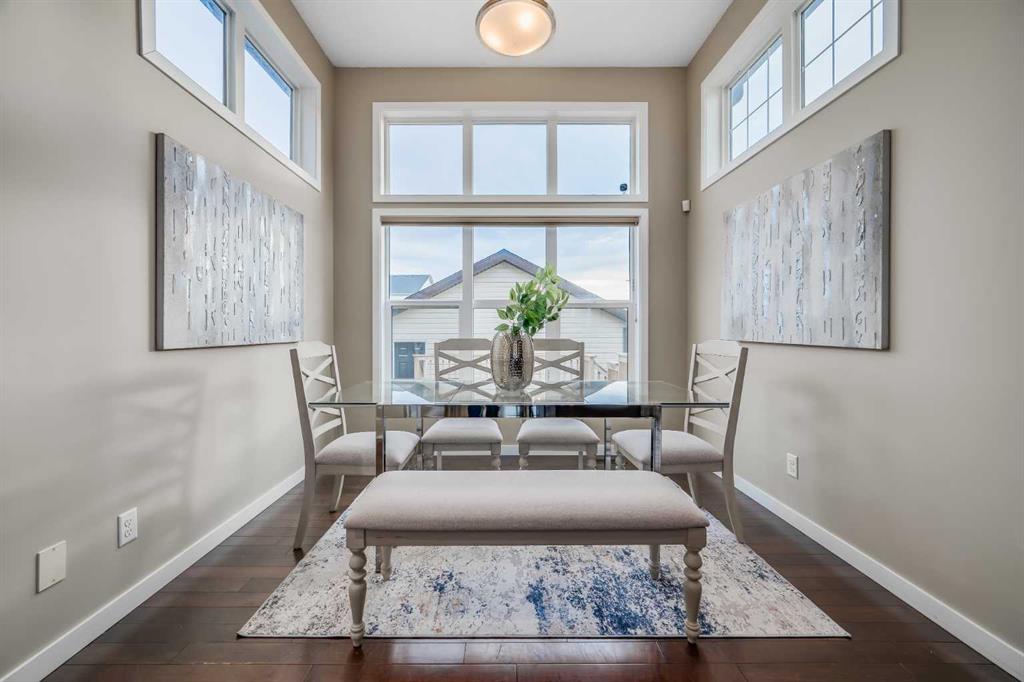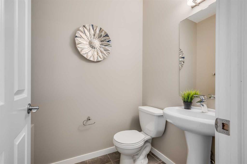 Welcome to this stunning home located in the highly sought-after Skyview Ranch community! Situated on a corner lot, this property offers an exceptional living experience, blending comfort, convenience, and modern upgrades in a fantastic location. As you enter, you’re welcomed by a spacious living area, followed by beautiful hardwood floors that flow through the kitchen and dining spaces, creating a warm and timeless atmosphere. The open-concept layout provides an ideal setting for hosting guests or enjoying quiet family time. The thoughtfully designed kitchen is perfect for any home chef, featuring sleek stainless-steel appliances, a large island, and plenty of cabinetry. A half bathroom completes the main floor. Upstairs, you’ll find three generously sized bedrooms, including a primary bedroom complete with its own private ensuite bathroom. A second full bathroom serves the additional bedrooms. The fully finished basement adds even more living space, offering a cozy living room, a bar area, a full bathroom, and a dedicated laundry room with extra storage. Step outside to the oversized deck, ideal for summer gatherings or peaceful evenings outdoors. The fully fenced backyard offers both privacy and ample room for outdoor activities. With over 2,100 sq. ft. of living space, this home also includes an oversized garage, providing plenty of room for vehicles, storage, or a workshop. Recent upgrades such as a new roof enhance both functionality and curb appeal. Just steps from a playground and walking paths, you’ll appreciate being close to outdoor recreation. The home has been meticulously maintained, and the back alley offers convenient access. An on-demand water heater ensures endless hot water for the entire household. Enjoy wonderful neighbors and the quiet, family-friendly atmosphere of Skyview Ranch, all while staying close to major roads, schools, parks, shopping, and public transit. Don’t miss your chance to make this charming home yours!