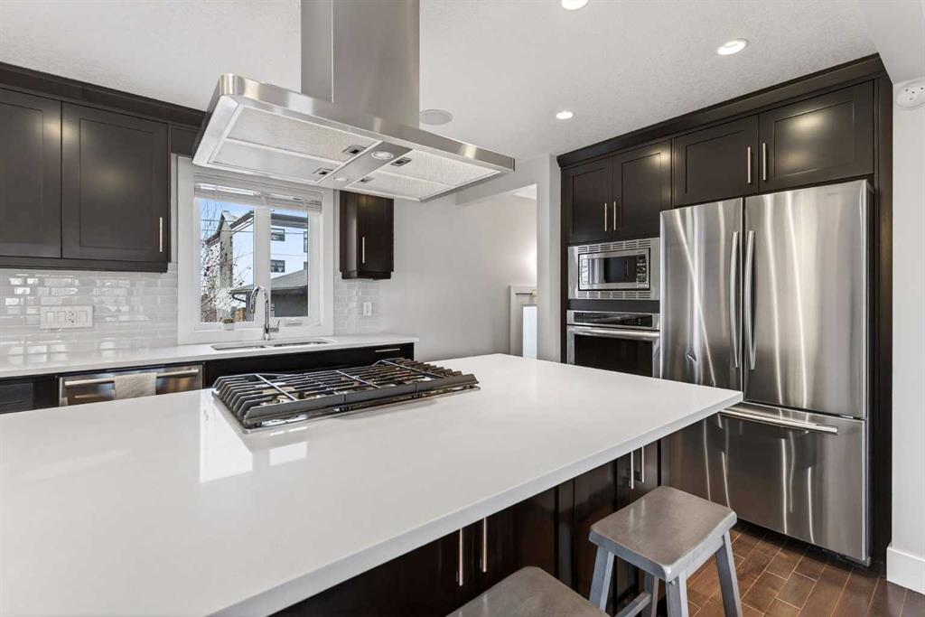 Discover a sophisticated lifestyle in this beautifully renovated Westgate bungalow situated on a private corner of a quiet street. This location offers a seamless balance of serenity and convenience with an effortless commute to downtown and quick access to the river walk pathways and the mountains. Facing a lush green space that provides both privacy and a natural area for recreation this home is perfectly suited for modern urban professionals or those looking for a versatile family environment. The open concept main floor features rich hardwood floors and a designer kitchen centered around a massive quartz island. With a premium gas range a beverage fridge and extensive counter space this home is a dream for those who love to host social gatherings and festive holiday dinners. The primary suite serves as a refined retreat featuring a substantial walk in closet and a modern five piece ensuite bathroom. A second bedroom and additional full bathroom complete the main level. Downstairs the expansive recreation area is designed for effortless entertaining featuring a sleek wet bar with two beverage fridges. Two additional bedrooms with large windows offer bright and adaptable spaces including one with a built in desk and murphy bed that easily transforms to suit your lifestyle. A functional laundry room with a dedicated sink adds further convenience to the lower level. The outdoor living space is an extension of the home with a spacious backyard featuring a patio with a gas line and a cozy firepit for evening relaxation. This stucco exterior home is complemented by a front driveway and a welcoming front sitting area to enjoy the peaceful neighborhood. An oversized heated garage provides plenty of room for vehicles and hobby gear for your weekend adventures. Whether you are looking for a modern sanctuary near the city core or a well appointed home with room to grow this property delivers an exceptional living experience.