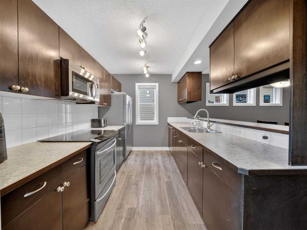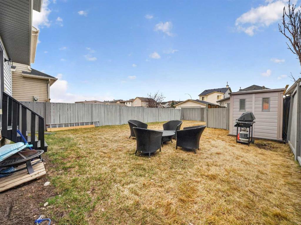 Welcome to this beautifully maintained, original owner two storey home tucked away on a quiet street in Bridlewood, offering over 2,200 sq. ft. of developed living space, an oversized yard, and a layout designed for real everyday living. From the charming front porch perfect for morning coffee or unwinding at the end of the day to the luxury vinyl plank flooring that spans all three levels, this home delivers comfort, function, and value in all the right places. The main floor is a true standout, offering an impressive amount of living space that is hard to find at this price point. Designed for both everyday life and entertaining, the open layout features a spacious living room and an expansive dining area connected by a stylish two-way fireplace that serves as a warm, inviting focal point for both spaces. The custom kitchen is built for function with abundant counter space, extensive cabinetry, pantry storage, and plenty of room to gather. You’ll also appreciate the convenience of main floor laundry, a powder room, and two separate mudroom-style areas that help keep busy family life organized. Upstairs, the home continues to impress with an enormous primary retreat complete with a private ensuite and walk-in closet. Two additional generously sized bedrooms and a full four piece bathroom provide plenty of room for family or guests. The fully developed basement adds even more flexibility with a large second family room, oversized fourth bedroom with a massive walk-in closet, and egress windows that help bring in natural light. Whether you need extra room for a growing family, guests, a teenager, or a home office setup, this lower level gives you options. Outside, the backyard offers exceptional space and future potential. Fully fenced and complete with a shed, parking pad, and fenced dog run along the side of the home, there is still plenty of room left to build a future oversized double garage while maintaining a great yard to enjoy. Bridlewood is a well-established southwest Calgary community known for its family-friendly feel, pathways, green spaces, and convenient access to everyday amenities. The area was designed with open spaces, recreation areas, and linear parks, while the nearby Bridlewood Creek Wetland adds a natural element to the neighbourhood with walking opportunities and local wildlife. Residents also benefit from quick access to shopping in the surrounding area, major commuter routes, and the convenience of getting onto Stoney Trail with ease, making day to day living and commuting simple. Move in ready and packed with space, character, and future potential, this is a home that truly stands out.