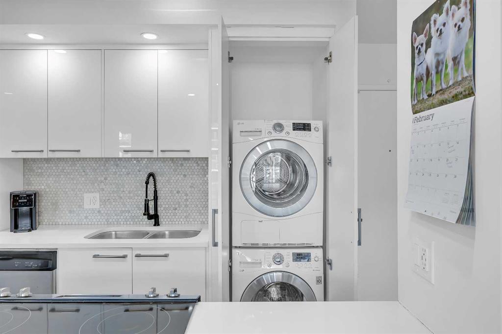 Fully renovated and move-in ready, this northwest corner 2 bedroom condo in the Beltline offers exceptional value in one of Calgary’s most walkable locations — and one of the best-priced 2-bedroom condos in the area. Whether you are a first-time buyer or investor, this turnkey property stands out in today’s market. The open concept layout features a modern kitchen with quartz countertops, high gloss cabinetry, stainless steel appliances, marble backsplash, and a functional breakfast bar. The bright living area opens to a private balcony with downtown and sunset views, complemented by new window coverings throughout. Both bedrooms are generously sized, with the primary offering double closets with built-in organizers. The updated bathroom includes full-height tile and quartz counters. Additional highlights include in-suite laundry, in-suite storage, a separate storage locker, and a designated parking stall with plug-in. This pet-friendly building with no weight restrictions has recently completed major exterior building improvements, including the full exterior envelope, windows, and roof providing buyers with added confidence in the condition of the building and long-term ownership. Located just steps from restaurants, shopping, transit, and downtown amenities, this is a stylish, low-maintenance Beltline home priced to sell.
