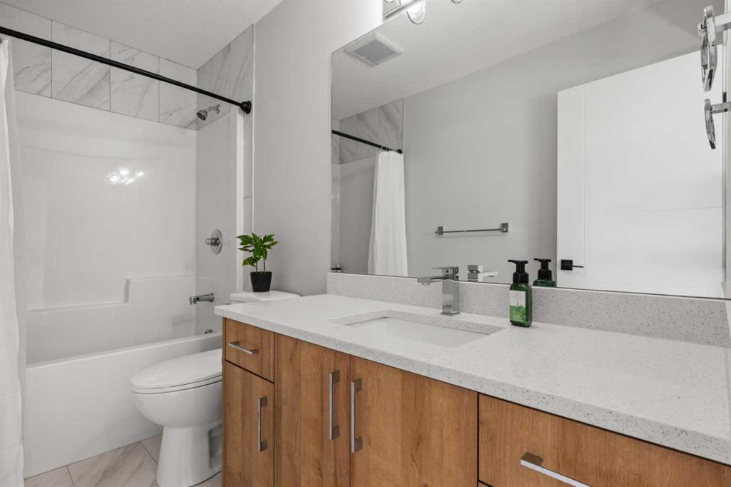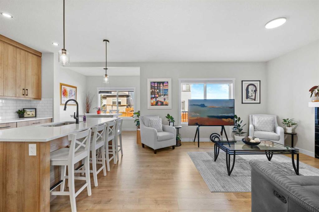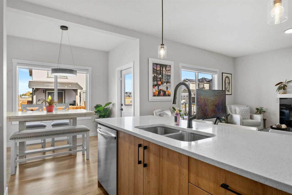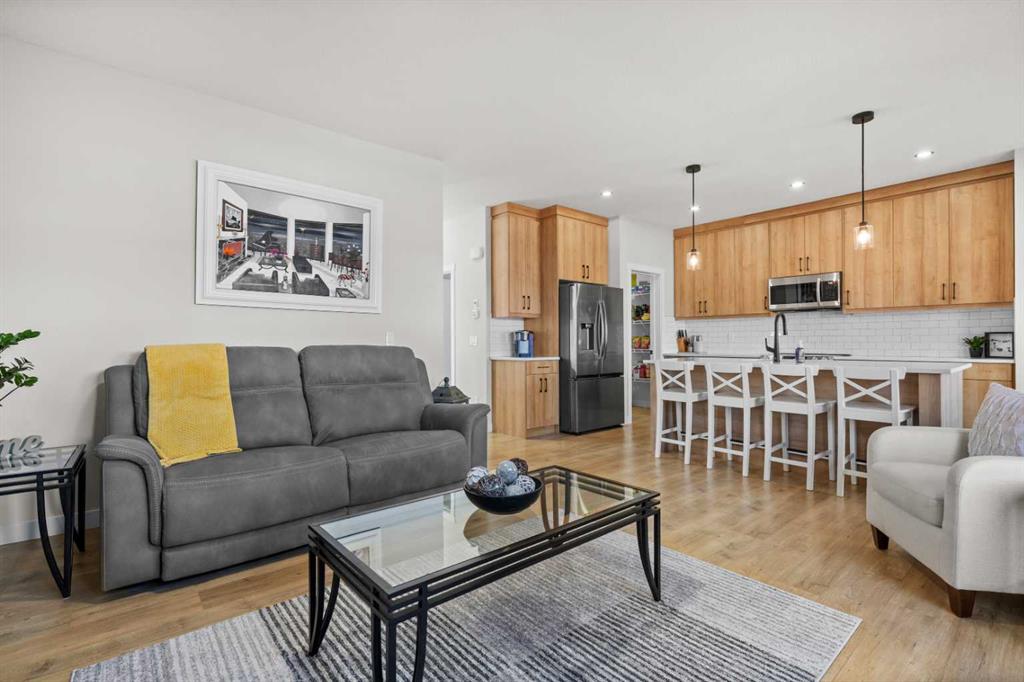 Discover the perfect blend of comfort and style in this like-new semi-detached home, ideally located on a desirable corner lot in the heart of Edgefield, Strathmore. Flooded with natural light, this thoughtfully designed 1,907 sq. ft. home offers a welcoming and functional layout. Step into a spacious entry with a soaring ceiling and a beautiful staircase leading to the second level. Continue past the main floor laundry and powder room to the modern open-concept design with stylish finishes. The main floor is anchored by an exquisite kitchen boasting a large island, quartz countertops, and plenty of cupboard and counter space. The kitchen flows seamlessly into the dining and living areas. The sunny dining nook overlooks the backyard and leads to the deck, offering convenience for barbecuing and outdoor enjoyment. There’s plenty of room to gather in the living room, which features a large window and a striking electric fireplace framed with ceramic tile. At the top of the stairs, you’ll find a cozy bonus room, three generous bedrooms, and a nicely appointed main bath. The primary retreat offers a walk-in closet and a spa-inspired ensuite with dual sinks, a separate shower, and a soaker tub. The unfinished basement is smartly laid out and awaits your creativity, offering two large egress windows, a bathroom rough-in, and a separate side entry. This thoughtful design provides exciting possibilities for a future suite or multi-generational living (secondary suite subject to municipal approval and permitting). Outside, the spacious backyard is a blank canvas ready for your landscaping ideas. Located in a growing community with a K–9 school and the Strathmore Sports Centre just steps away, plus shopping, scenic pathways, and nearby amenities, this home is ideal for families and savvy investors alike. Strathmore offers affordable living with a strong sense of community—only 25 minutes east of Calgary—making this the perfect place to plant roots and grow.