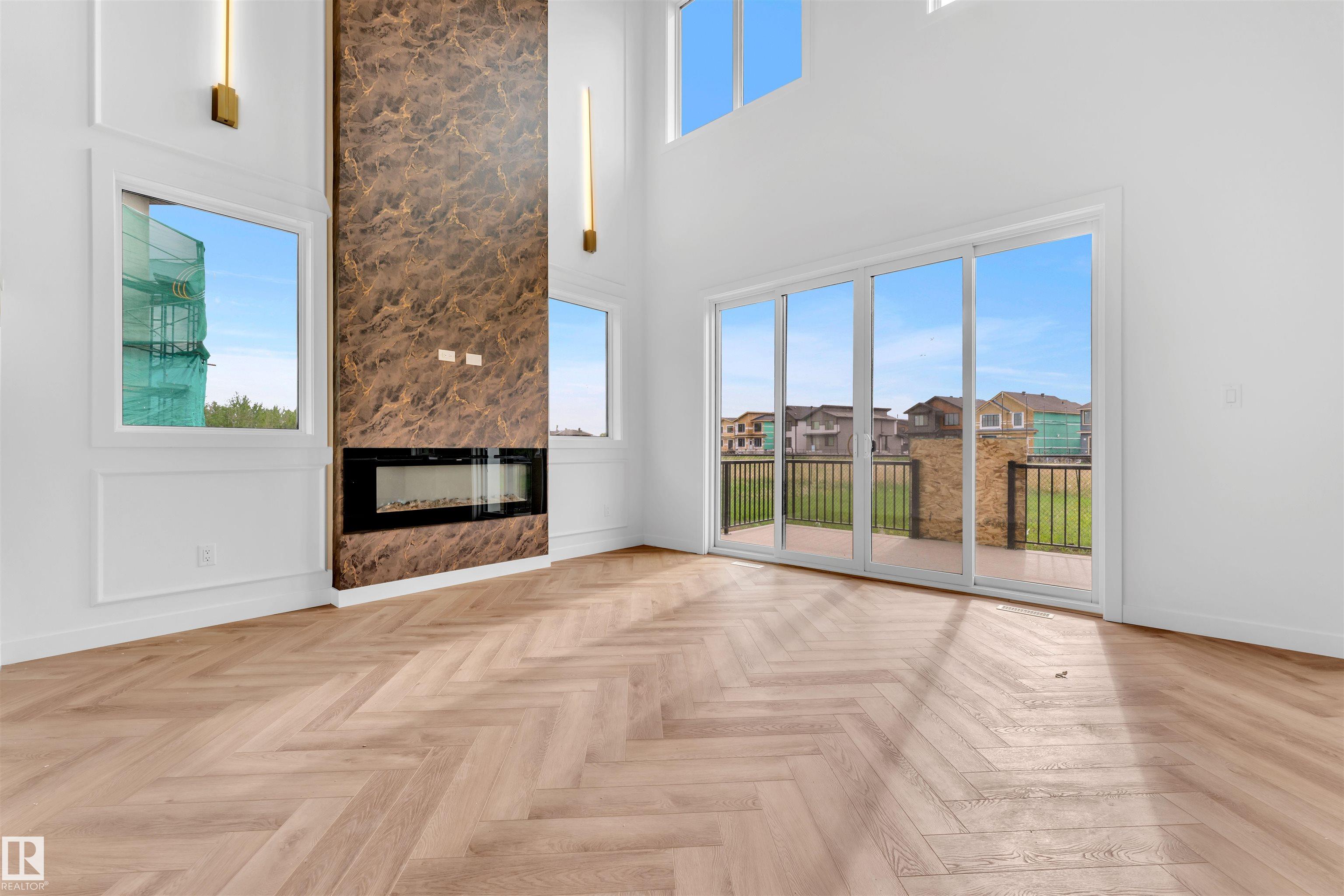 Backing to green | Pie shaped lot. Step into luxury with this fully upgraded custom TRIPLE car garage home with NO Neighbours at the back ! The main floor double door entry features a spacious MASTER bedroom WITH OPEN TO ABOVE, FIREPLACE , 5pc ENSUITE , W/I Closet & own private Deck. you will also find Den and additional 2 pc bathroom on main floor. The chef-inspired Open to Above Kitchen is a true masterpiece, complete with a unique center island .The open-concept living area showcases a custom STUNNING feature wall. The upper level you will find a spacious bonus room. Two bedrooms with their own separate closets & JACK/JILL Bathroom. Another bedroom with common bathroom. Laundry is conveniently located upstairs. The unfinished basement with 3 windows & separate entrance offers endless potential.