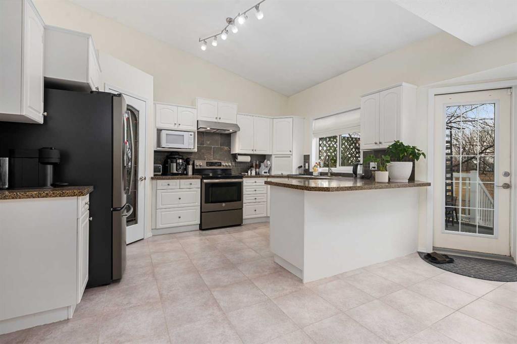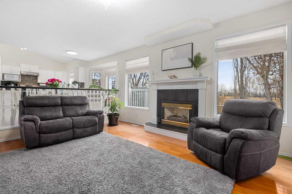 Welcome to this beautifully updated 2-storey split home, ideally located along the 10th hole of Woodside Golf Course. This impressive property combines timeless design with thoughtful modern upgrades, offering both comfort and functionality. The home has been freshly painted and features numerous recent improvements, including a new furnace and hot water tank (January 2025), new hood fan (January 2025), and a new dishwasher (November 2025), providing peace of mind for years to come. Upon entry, you’re greeted by high vaulted ceilings in the living room, dining area, and kitchen, creating an airy and welcoming atmosphere. Large windows fill the home with natural light, enhancing the open and spacious feel throughout. The main floor offers a cozy sunken family room with a gas fireplace, perfect for relaxing evenings, as well as a versatile main floor bedroom ideal for a home office or guest room. Upstairs, you’ll find three generously sized bedrooms, including a spacious primary retreat featuring a recently renovated ensuite and a custom walk-in closet by California Closets. The second level has been updated with modern vinyl plank flooring, adding a sleek and contemporary touch. The fully finished basement is designed for entertaining, offering a large recreation room complete with a fireplace, built-in desk, bar, and TV wall unit. A fifth bedroom and a 3-piece bathroom complete this flexible lower level. Additional highlights include air conditioning, location on a school bus route with priority snow removal, an extra-long driveway accommodating up to four vehicles or a large RV, and a spacious oversized double garage. Step outside to enjoy summer days on the large deck, overlooking a beautifully maintained backyard with a sprinkler system, all just steps from Woodside Golf Course and the 525 Restaurant. This is a rare opportunity to own a well-maintained, move-in-ready home in a premium golf course location.