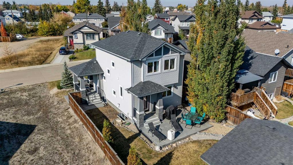 UPGRADES GALORE! This fabulous two-story in Springbrook offers far more than you’d expect in a starter home, with HIGH END finishes and thoughtful upgrades at every turn. Built in 2013, this home welcomes you with an open concept main floor featuring QUARTZ countertops, a LARGE ISLAND with extra seating, a full counter to ceiling tile backsplash, a cozy GAS FIREPLACE, IRON SPINDLE railings, and a spacious PANTRY. The upstairs level offers a bright and comfortable primary retreat with a 4 piece ensuite, along with additional bedrooms and a full bath designed for family living. The FULLY FINISHED basement, completed in 2018, adds even more living space with beautifully finished concrete,, a projector screen with SURROUND SOUND for movie nights, and roughed in in-floor heating. Other upgrades in this home include a brand new hot water tank, built in speakers and TOTO toilets throughout. Outside, the curb appeal shines with HARDY BOARD detailing, while the COVERED FRONT DECK wraps around the side with durable COMPOSITE DECKING and iron railings. The PRIVATE backyard is designed for low maintenance enjoyment with a full poured concrete pad ideal for outdoor furniture or a hot tub, a FENCED YARD, tall trees, garden plot, and a shed on a concrete base. The OVERSIZED 25 x 24 DETACHED GARAGE, built in 2017, provides excellent parking or workshop space. Springbrook is a quiet and welcoming community just 5 minutes from South Red Deer, offering lower property taxes, family friendly parks, playgrounds, sports fields, and skate park. With the Red Deer Regional Airport undergoing expansion and community amenities continuing to grow, Springbrook combines small town charm with excellent access to city conveniences along with LOWER TAXES - the perfect place to call home!