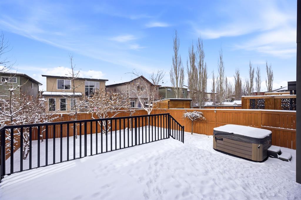 Enjoy Living in Auburn Bay and the Amazing Lake Amenities! Quality BayWest Homes Kootenay Plan. This Beautiful 2 Storey has a Front Den with Double French Doors for Privacy. Spacious Open Plan with Amazing 2-storey high Ceiling with Fan in the Great Room and 3-sided Pier Fireplace open to the Dining Area and Kitchen. Convenience abounds with a walk-through Pantry from the back Mudroom off the Garage through to the Upgraded Kitchen with Built-in Stainless Appliances and Stunning Granite Countertops. Upstairs the Bonus Room provides Extra Family Living Space. Primary Bedroom is well appointed with a spacious 5 piece Ensuite, with Dual Vanity Sinks, Corner Soaker Tub with Waterfall, large Shower and Walk-in Closet. The Basement is partially developed by the Builder with a 4 piece Bathroom, partially developed room for an extra Bedroom, Craft, Workout or Play Room with an oversized window with security bars. There is a large partially developed space ready for your personalization as a Recreation Room, or Games Area and Plenty of Storage Space all ready to finish to your preference. Outside there is a huge 16' x 16' Composite Deck and nice yard space with a relaxing Hot Tub, Trees and a Storage Shed in the Side Yard. All located near Parks, Ponds, Playgrounds, Schools and a short walk to the Lake Amenities, and a large Dog Park. Nearby Seton and Mahogany have a multitude of Amenities, Shopping & Services for your convenience. Good Access nearby to Deerfoot Tr and Stoney Trail. Great Home, Great Location!