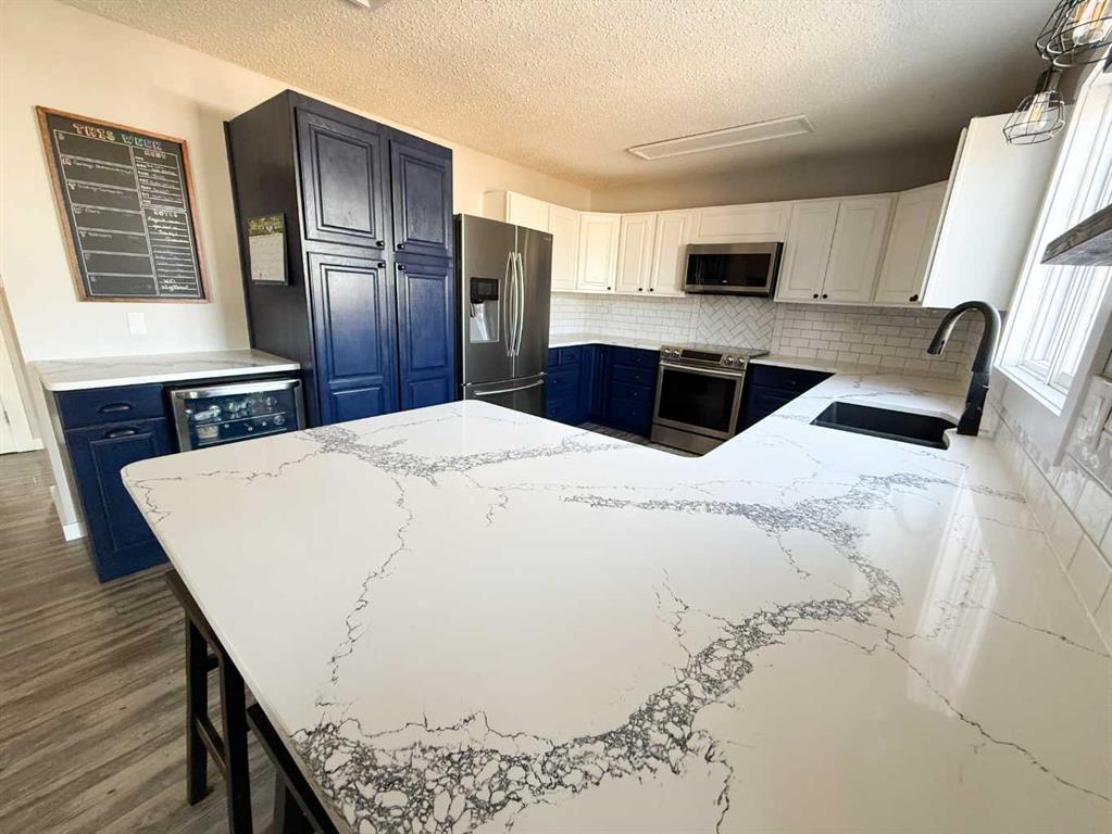 In the heart of a cul de sac, on Chickadee Drive, sits this stunning character home boasting over 4000 sq ft of renovated living space. Your attention will be captured from the moment you walk in the door with the soaring ceilings, natural light and gorgeous staircase. There are 2 living rooms on the main floor, a cute library on the upper level & theatre room with pool table in the basement, what more rec space do you need? The kitchen is set up with all new drawers below, beverage center , high end appliances, custom tile work & beautiful quartz countertop. Laundry on the main floor, the perfect spot for a big home. 4 bedrooms on the upper level, including main 4 pc bath & 3 pc ensuite. We love the upstairs loft library that overlooks the main floor, classy. Another neat feature- the sunroom that leads to the outdoor patio, the feature you never knew you needed until now! From Sunrise to sunset you can enjoy some beautiful weather on the deck over the garage while overlooking Centennial Park! This home could also offer potential for investment in the basement or multi- family living with the separate side entrance. 3 additional bedrooms, 3 pc bath and theatre room complete the basement. Shingles , 2 furnaces,2 hot water tanks, all landscaping with fencing replaced in 2020-2021 . The 24x26 garage is very storage friendly.
